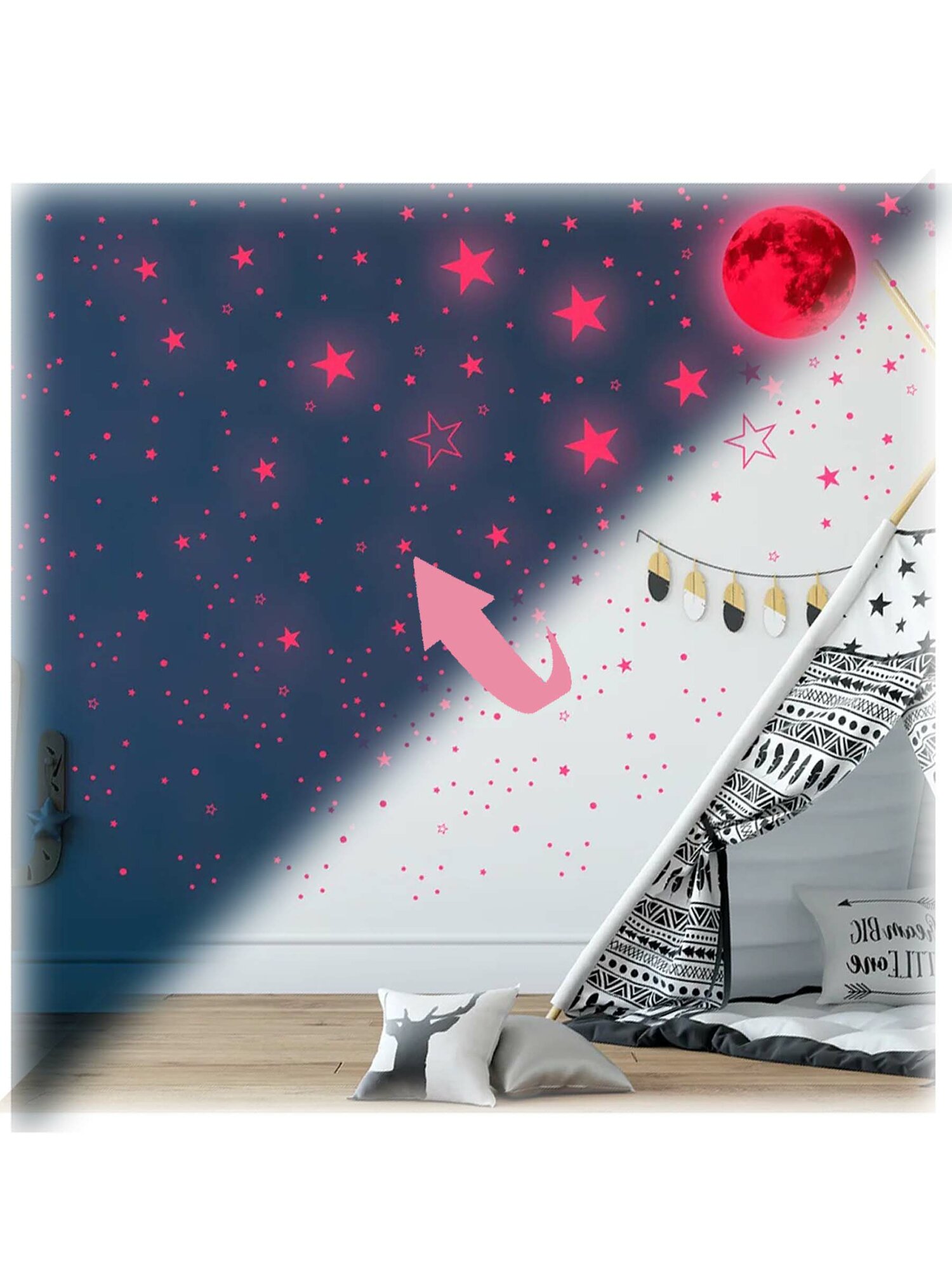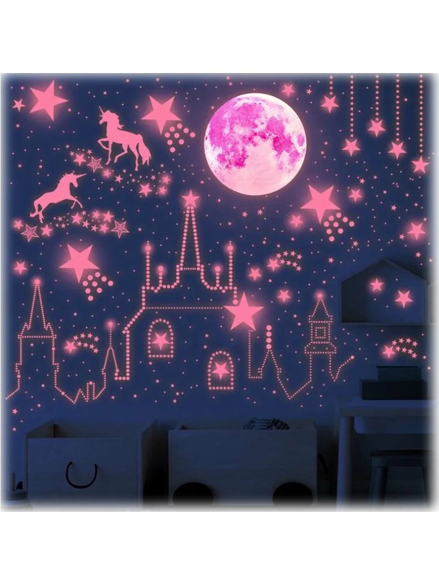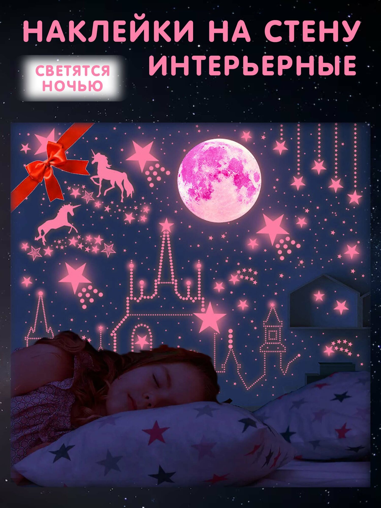 Интерьерные наклейки на стену детские розовые замок и звезды интересное: