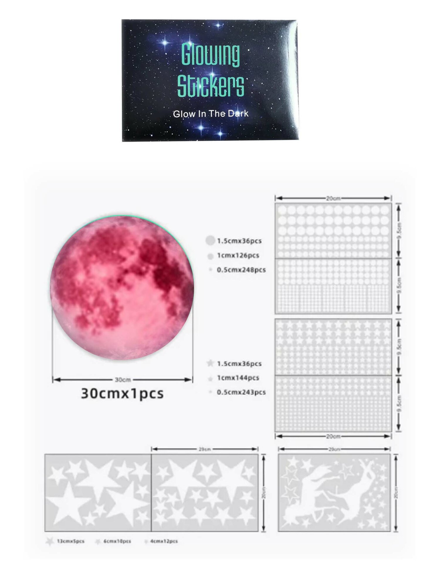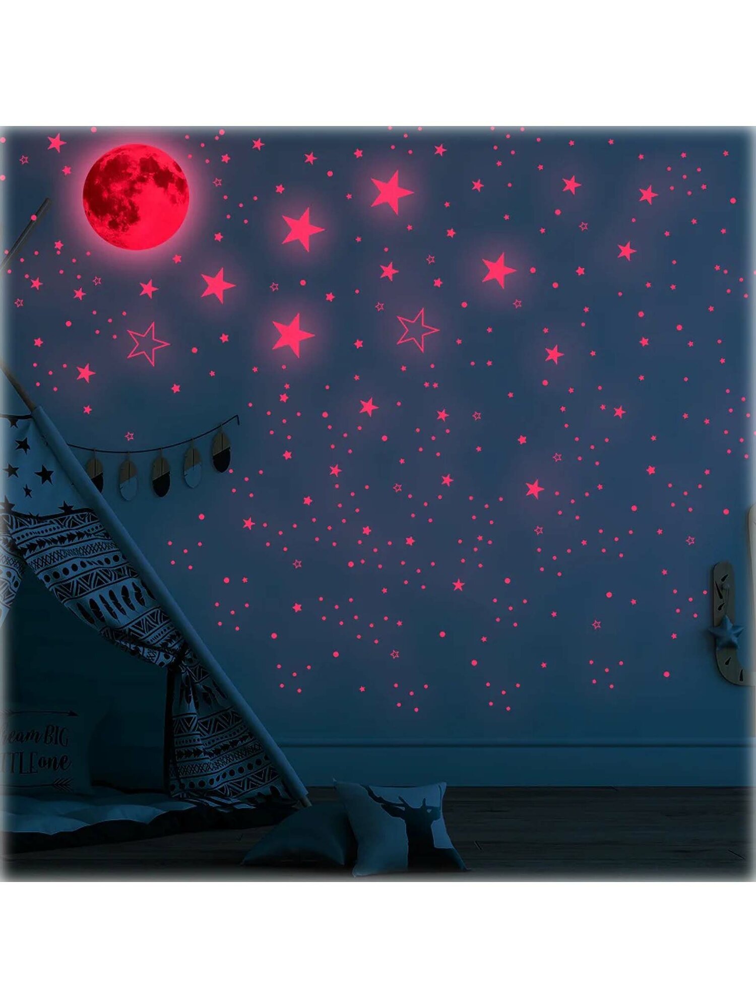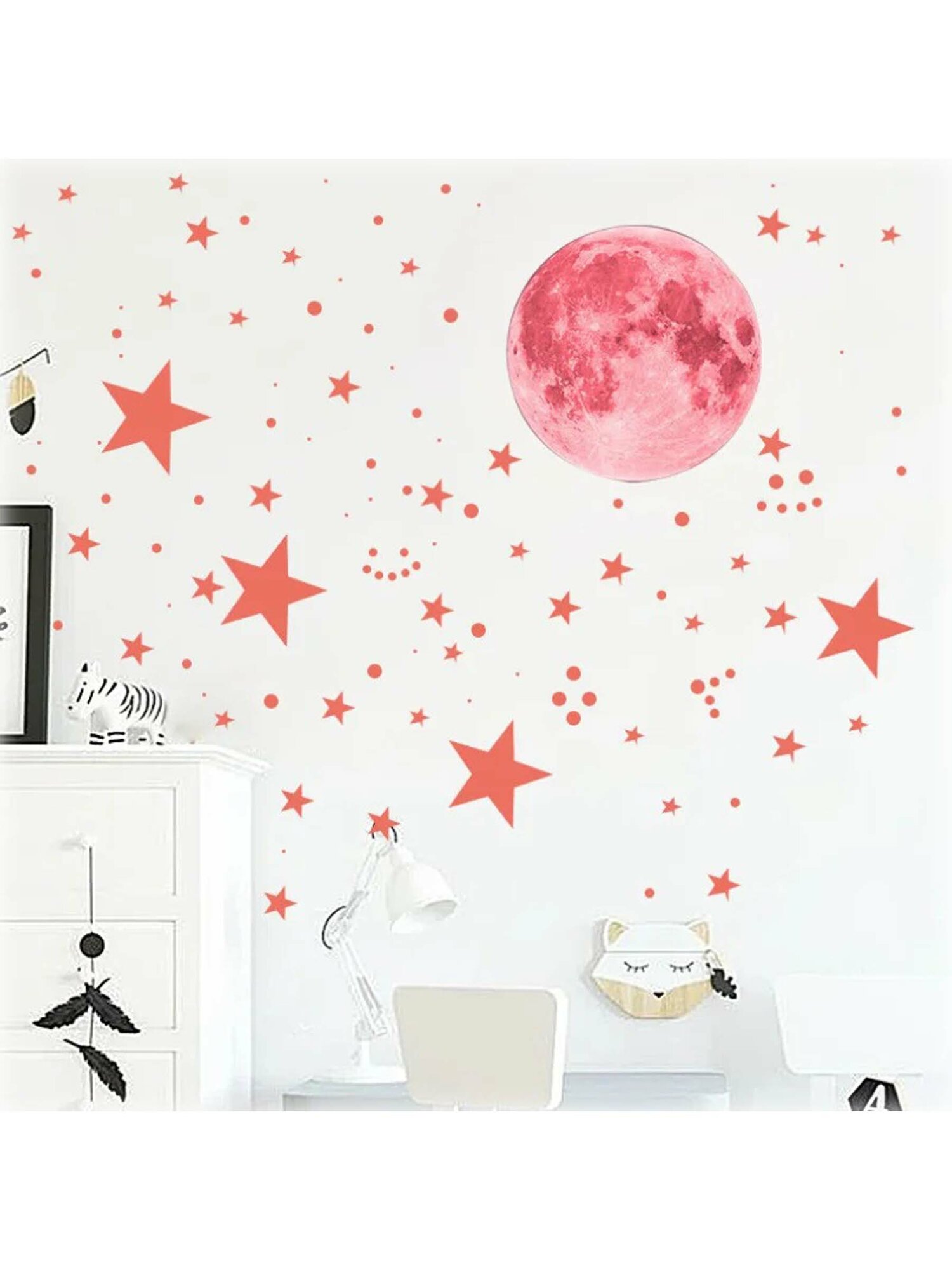 Интерьерные наклейки на стену детские зеленые звезды и луна