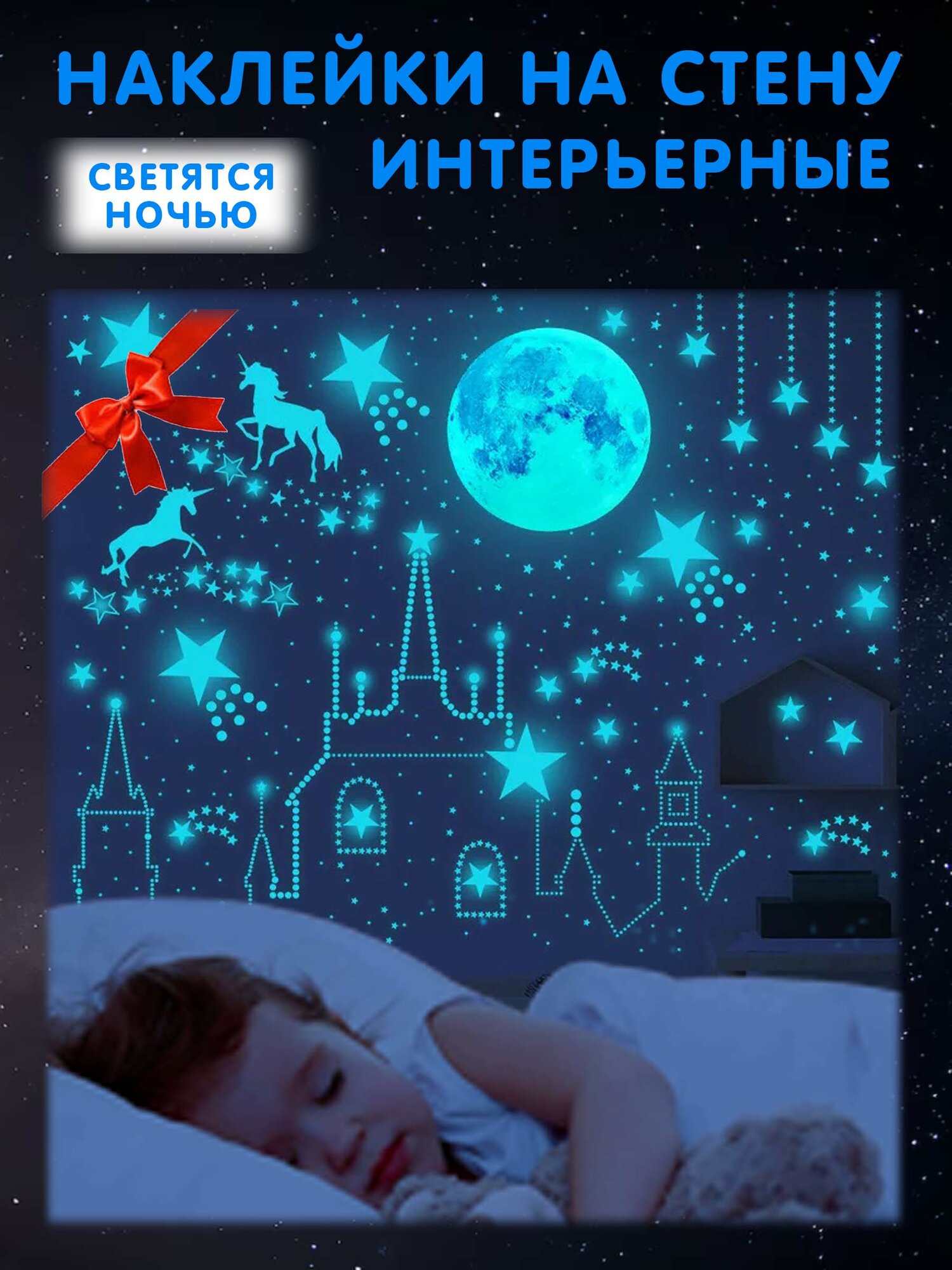 Интерьерные наклейки на стену детские голубые замок и звезды интересное: