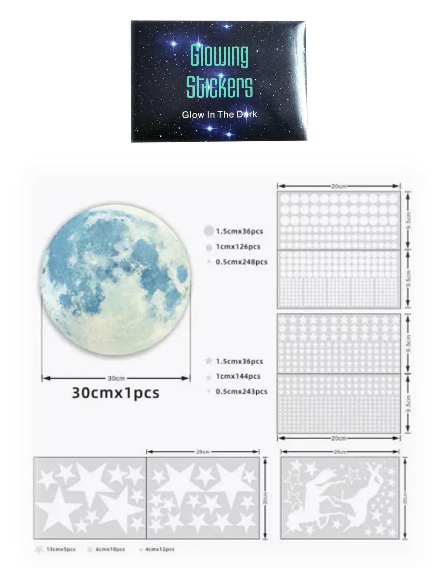 Интерьерные наклейки на стену детские зеленые звезды и луна