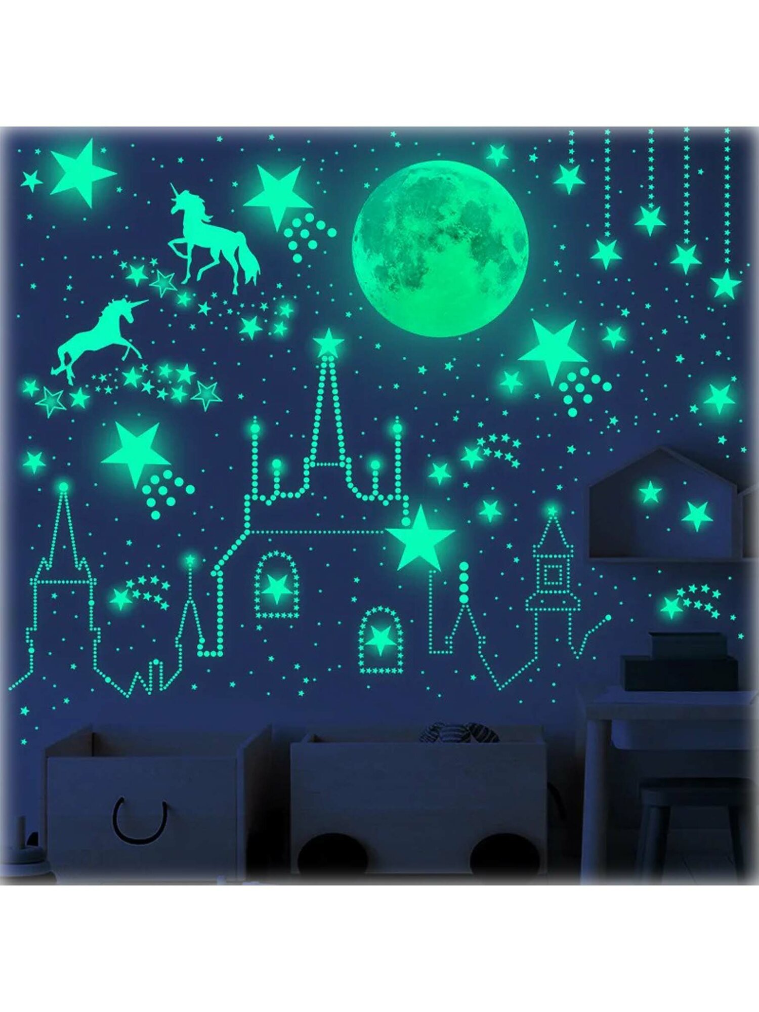 Интерьерные наклейки на стену детские зеленые замок и звезды интересное: