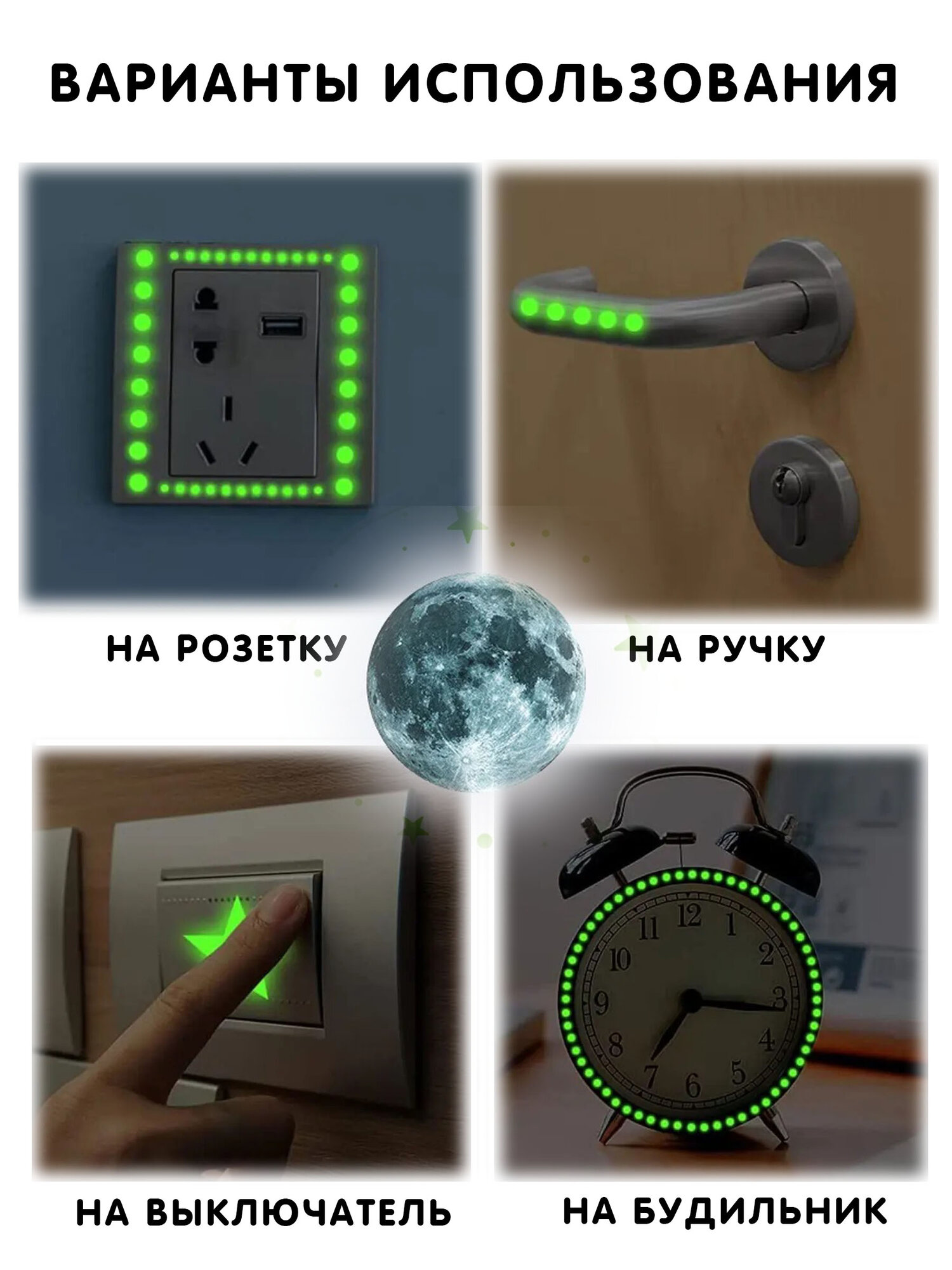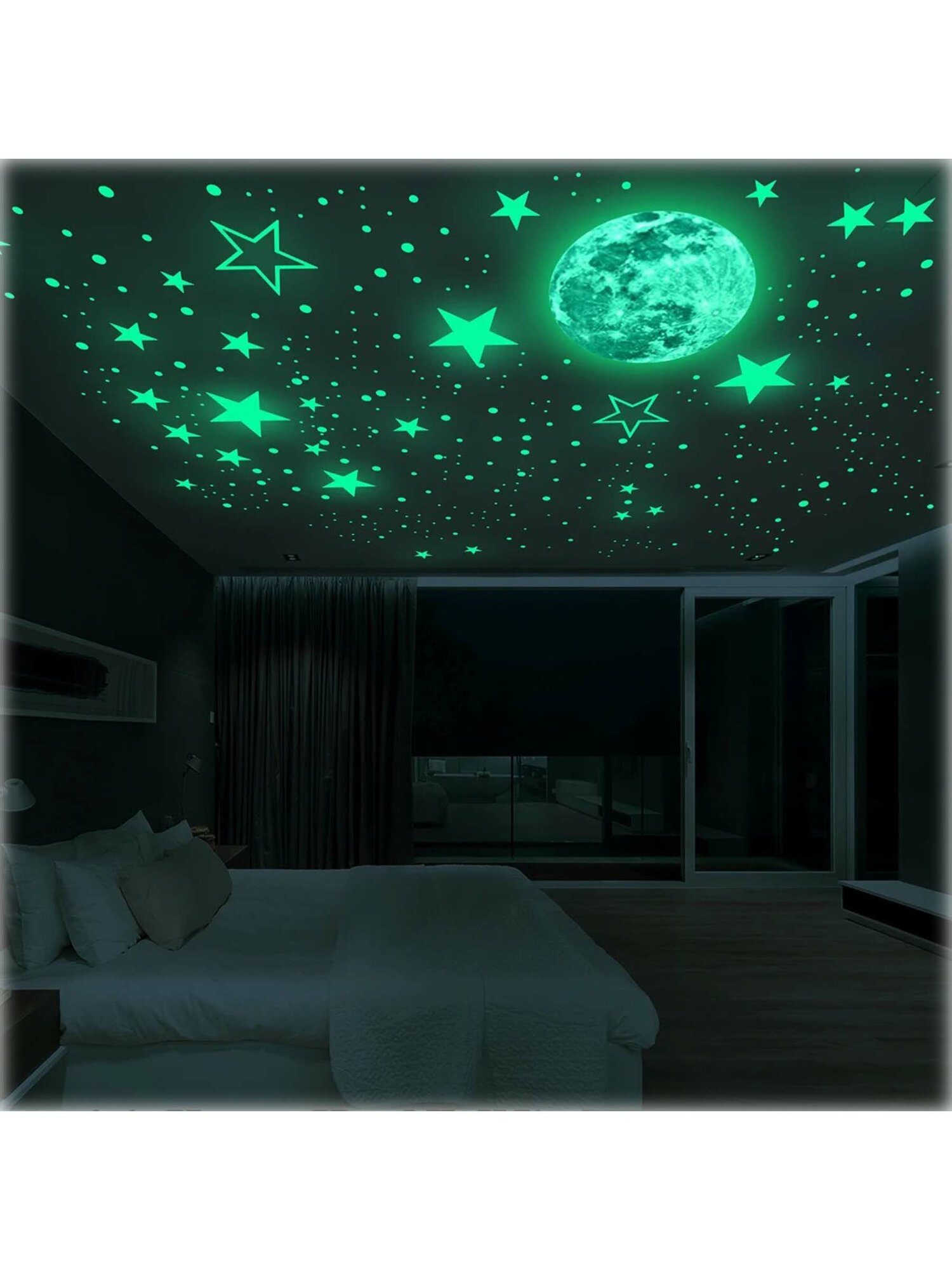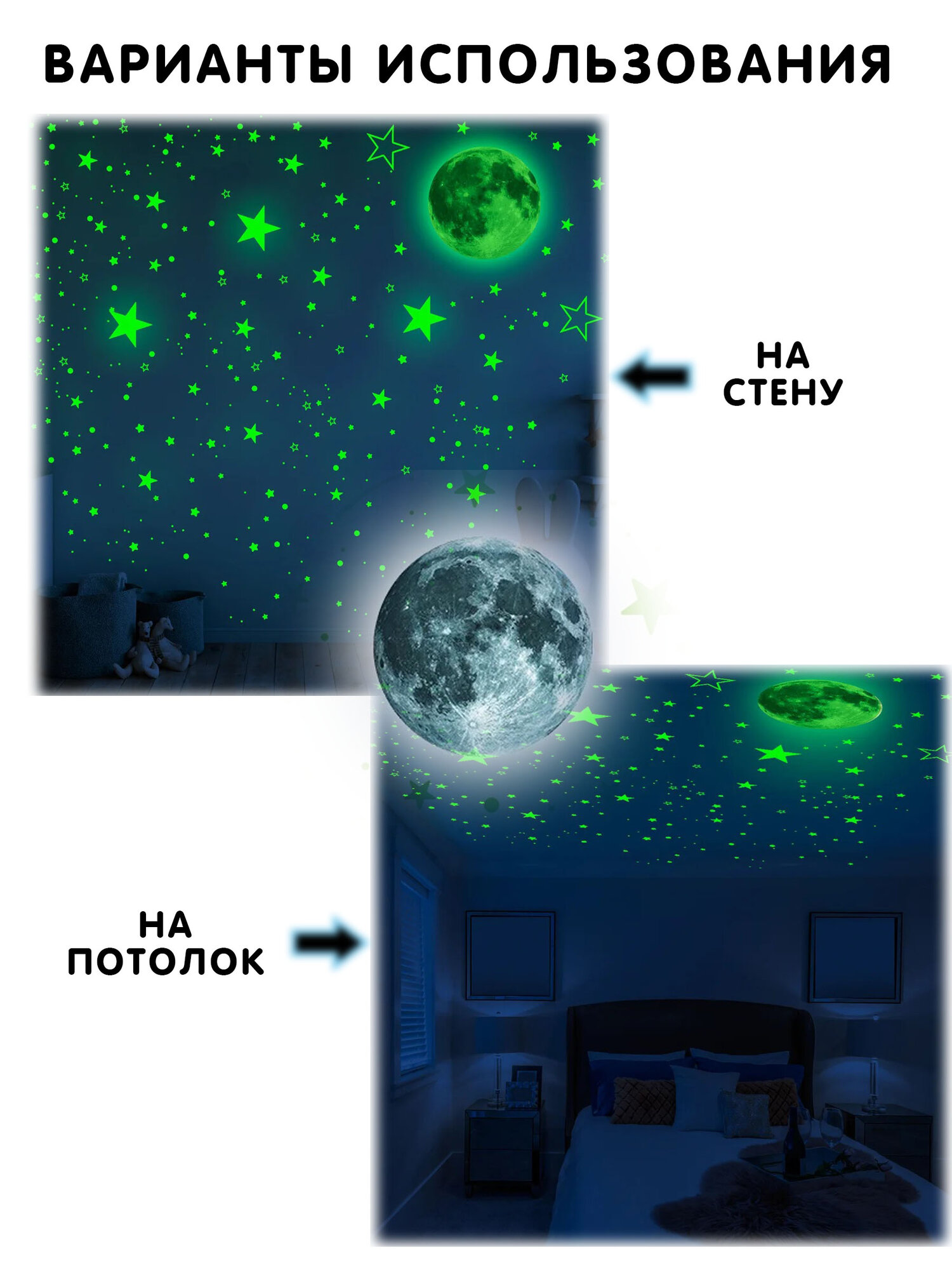 Интерьерные наклейки на стену детские зеленые звезды и луна