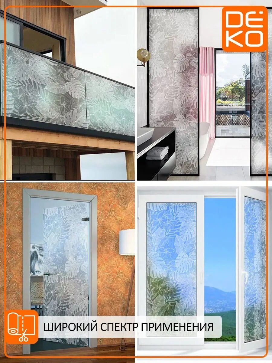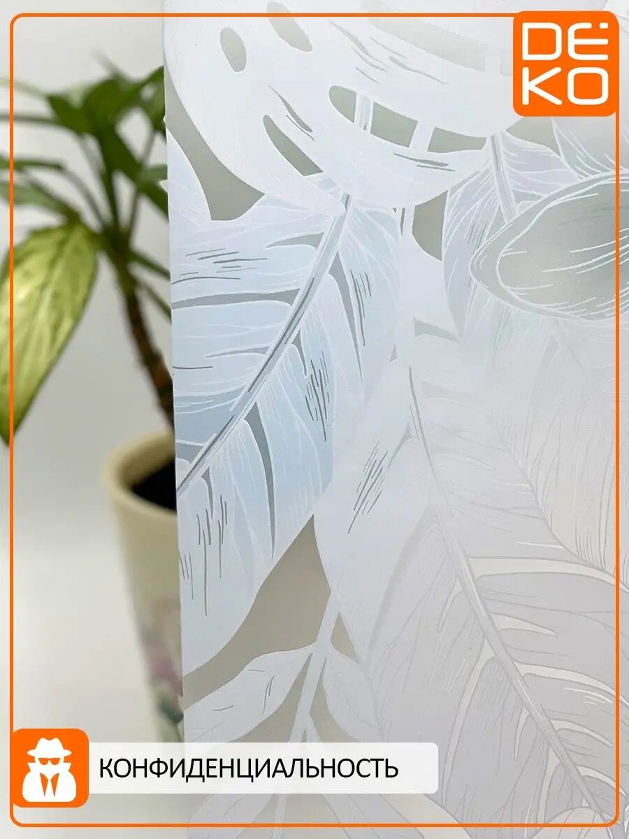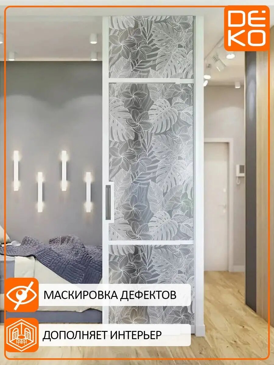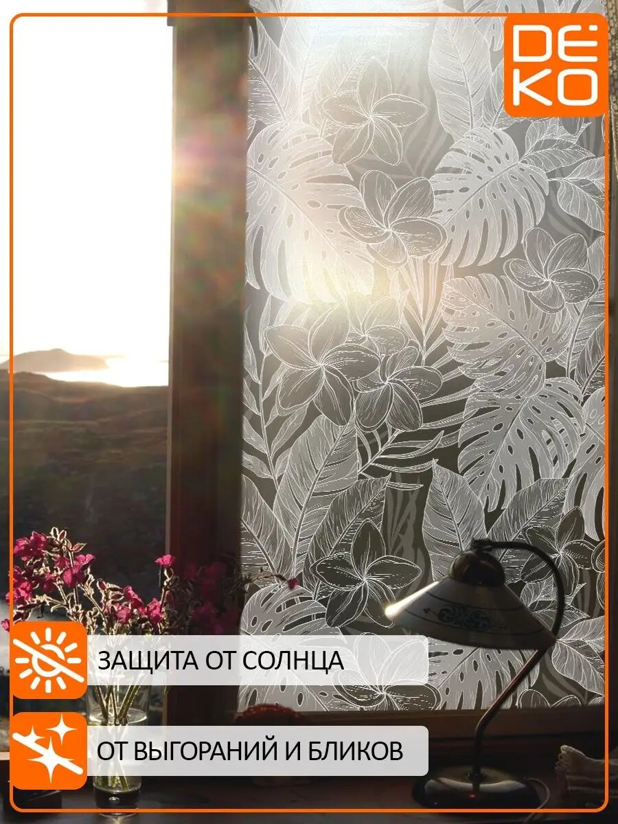 Купить Пленка DEKODOM "Пальма и цветы", для стекла, 75х150см, самоклеящаяся, влагостойкая, белая