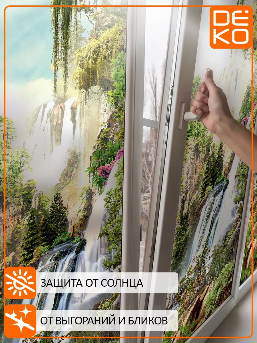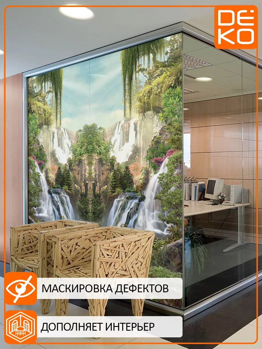Самоклеящаяся пленка DEKODOM "Водопад и горы", для стекла, 75х150см, матовая, влагостойкая, экологичные краски