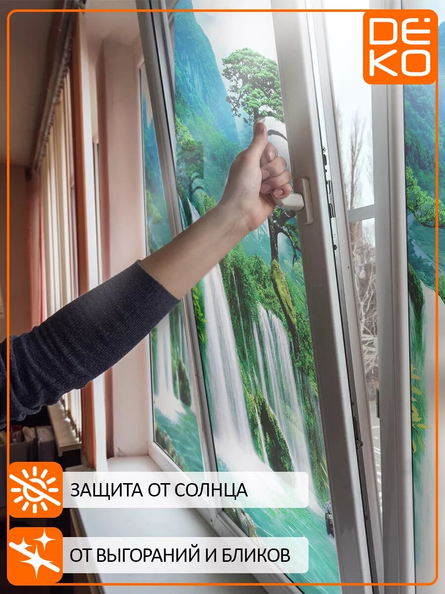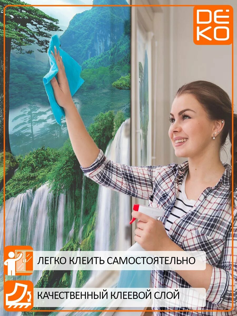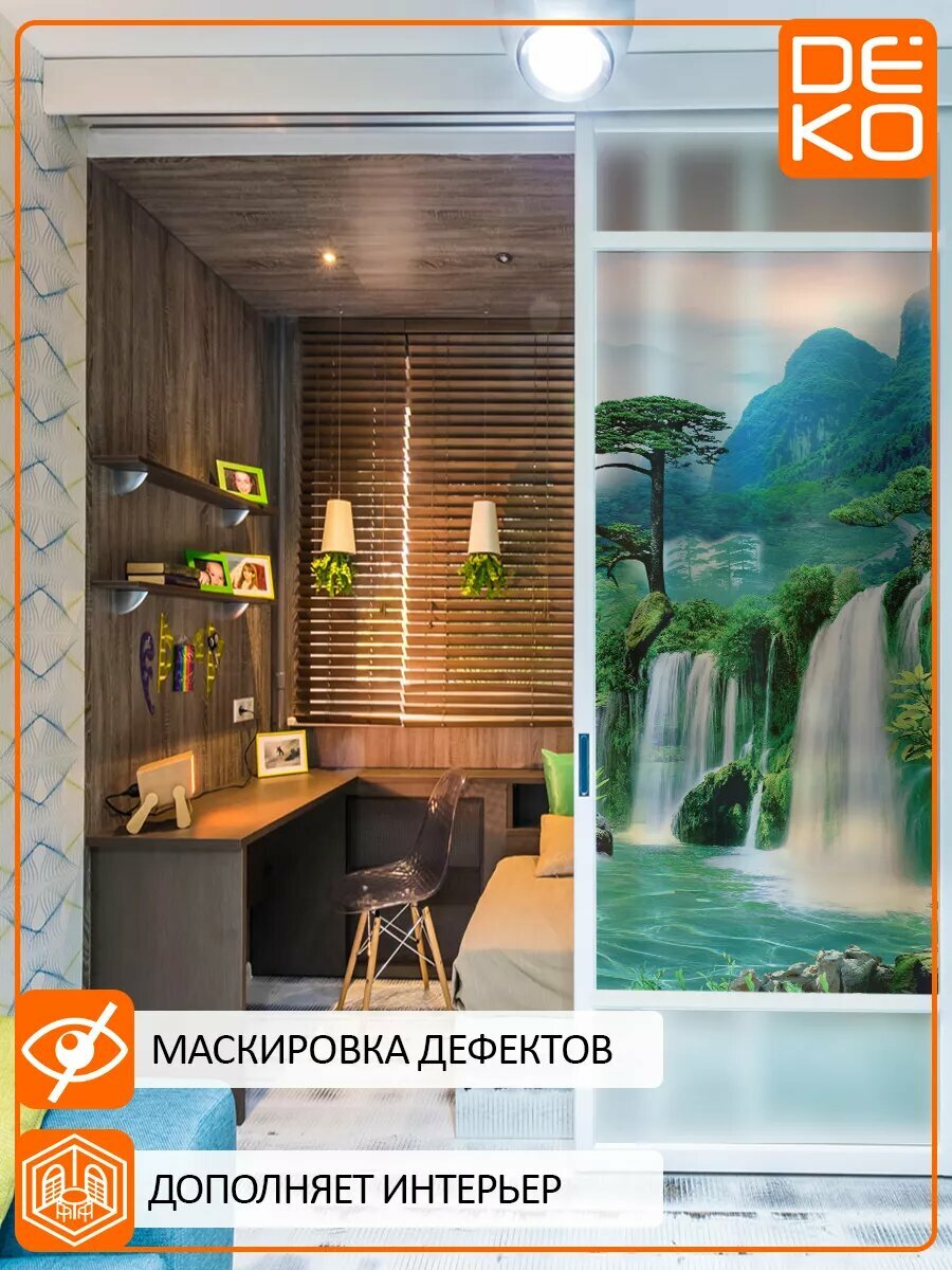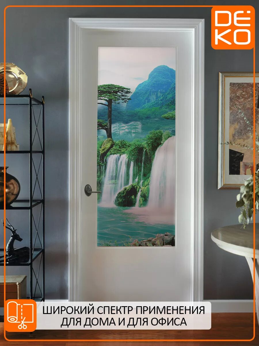 Купить Самоклеящаяся пленка DEKODOM "Водопад и горы", для стекла, 75х150см, матовая, влагостойкая, экологичные краски