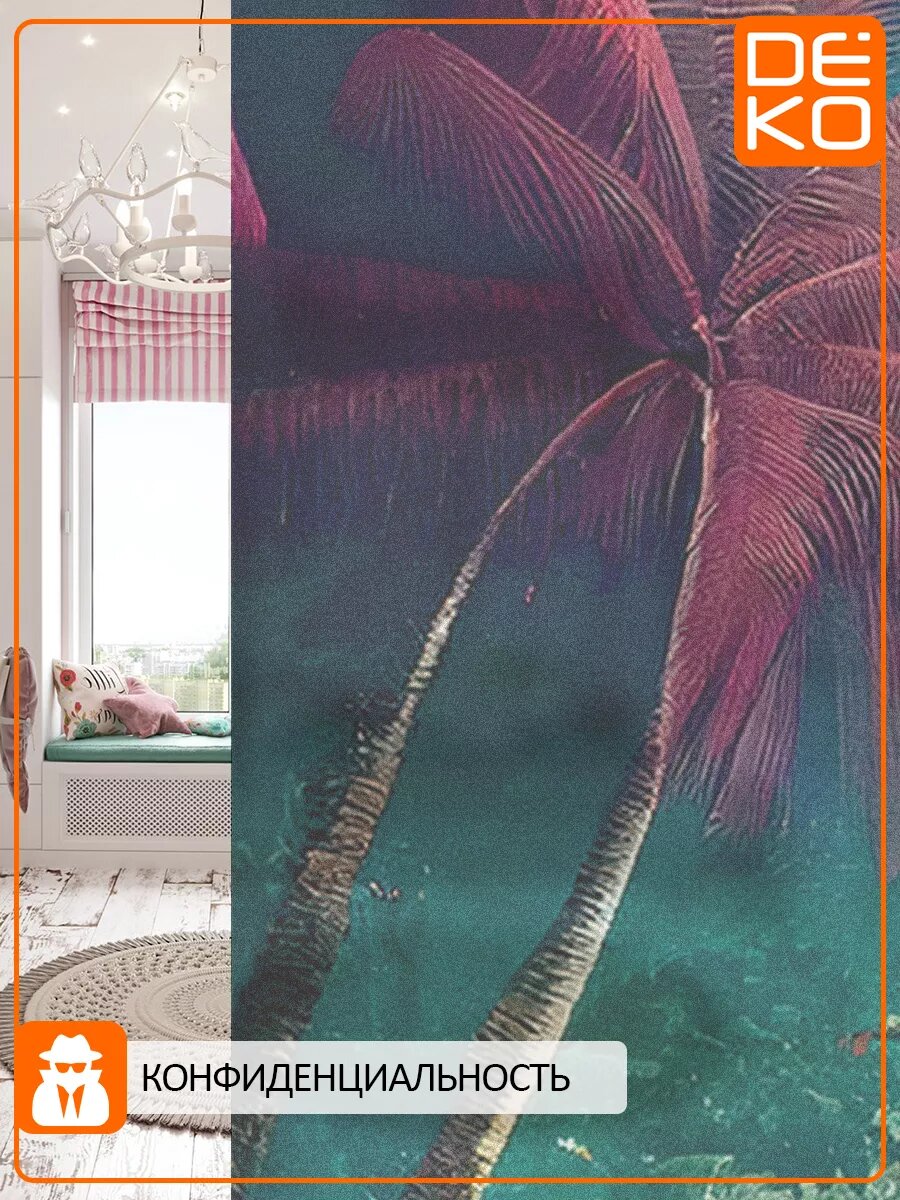 Пленка DEKODOM "Пальма и цветы", для стекла, 75х150см, самоклеящаяся, влагостойкая, белая