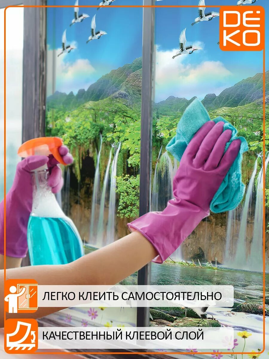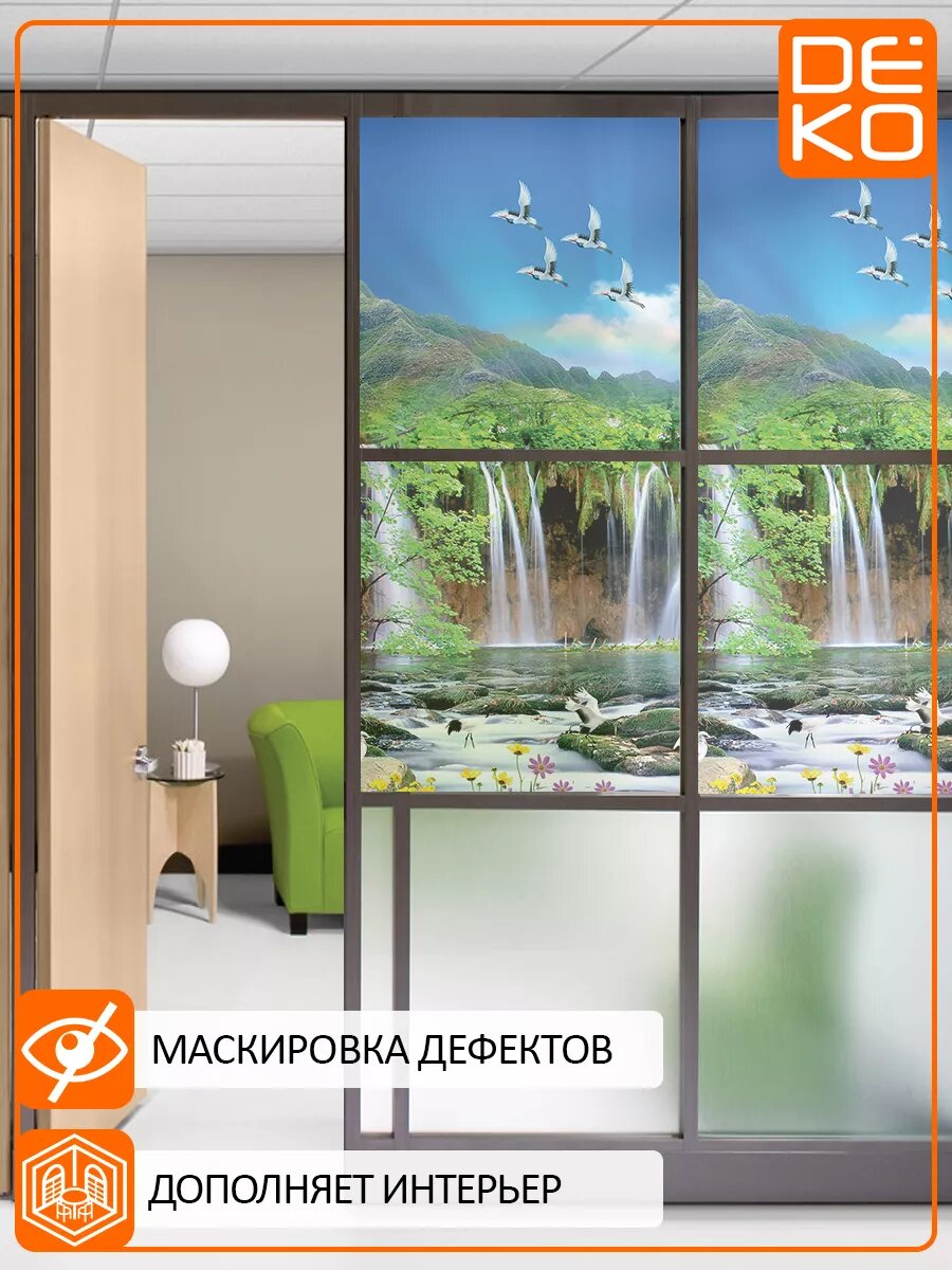 Самоклеящаяся пленка DEKODOM "Водопад и горы", для стекла, 75х150см, матовая, влагостойкая, экологичные краски