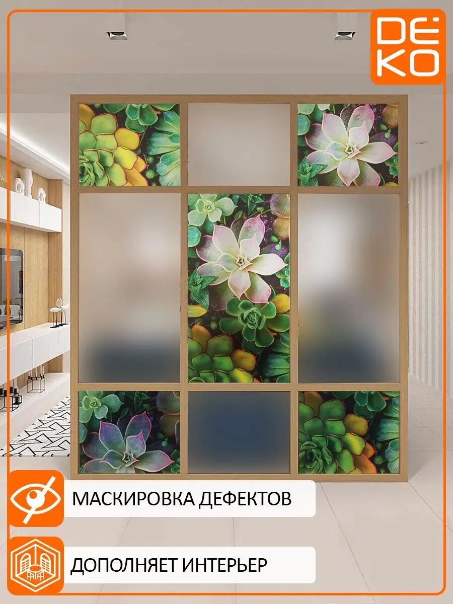 Пленка DEKODOM "Пальма и цветы", для стекла, 75х150см, самоклеящаяся, влагостойкая, белая