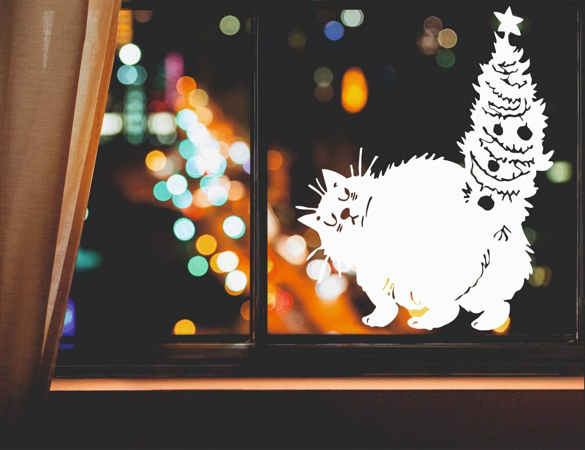 Купить Наклейка новогодняя для оформления окон и витрин "Новогодний кот" (40х50см.). Декор для окон / новогодний.