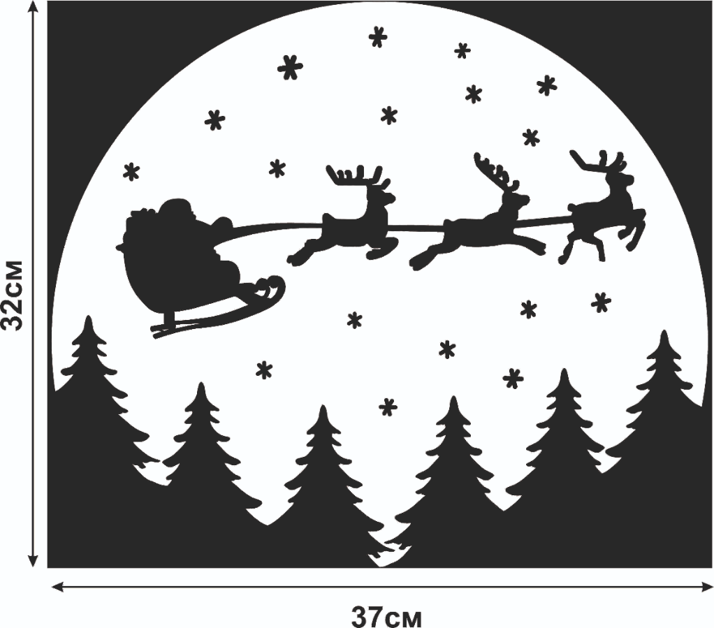СохранитьНаклейка для оформления окон и витрин "Дед мороз и олени" (37х32 см.). Декор для окон / новогодний. интересное: