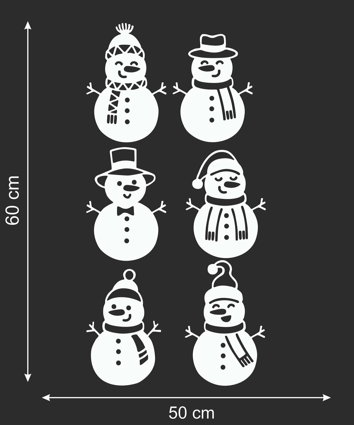 Купить Наклейка новогодняя для оформления окон и витрин "Шесть снеговичков" (60х30см.). Декор для окон / новогодний.