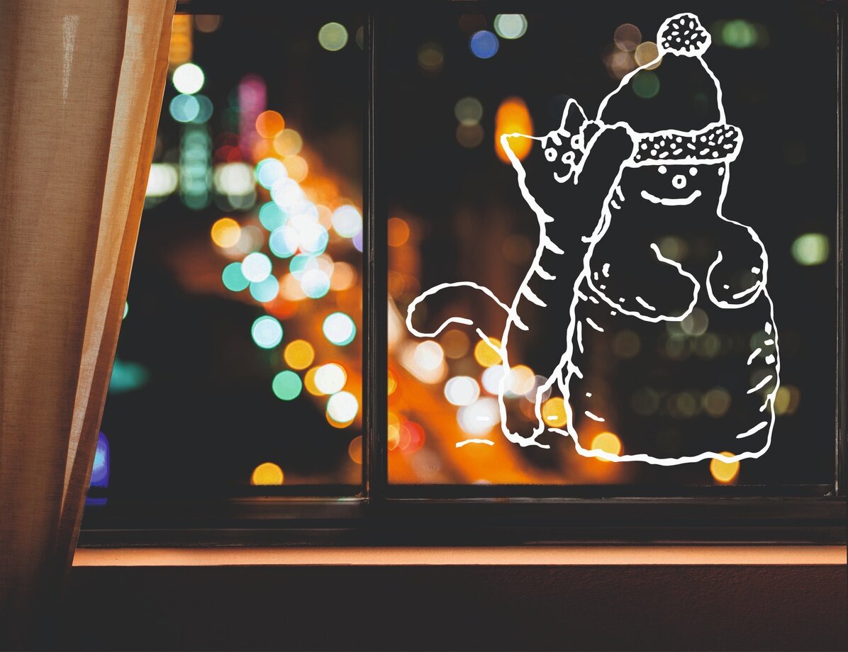 СохранитьНаклейка новогодняя для оформления окон и витрин "Кот и снеговик" (45х55см.). Декор для окон / новогодний. интересное: