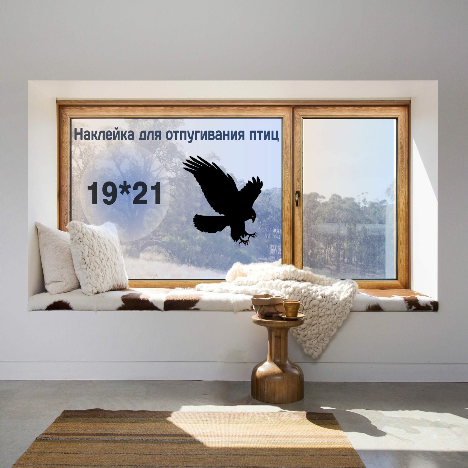 Наклейка силуэт хищной птицы 19х21см. Для отпугивания птиц и украшения на окно, стену, машину интересное: