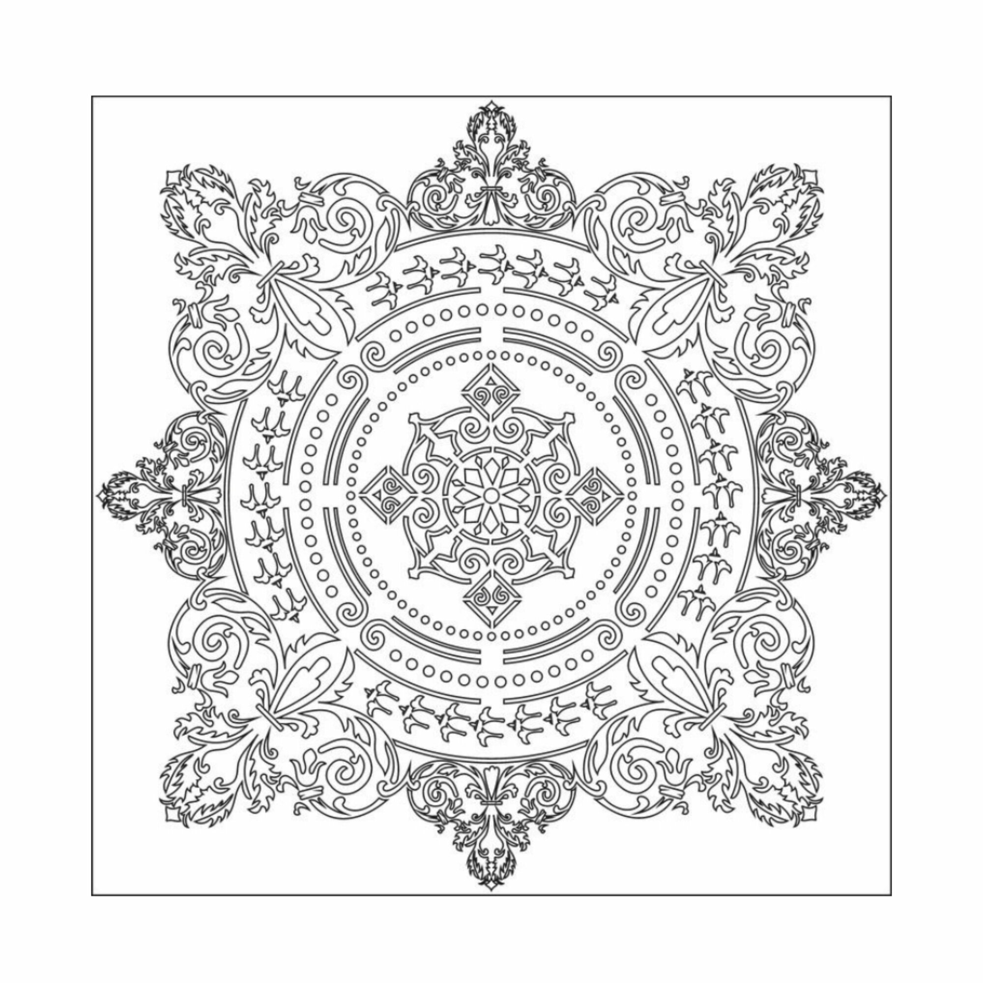 Трафарет для стен, творчества, декора Мандала 1/4 часть 40х40 см ПЭТ-0,5 мм