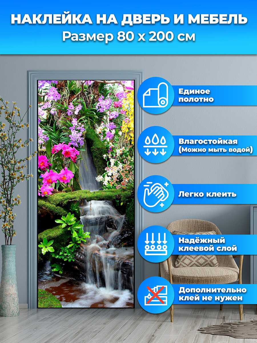 Наклейка интерьерная на дверь "Водопад в Тайланде", 80х200 см самоклеющаяся интересное: