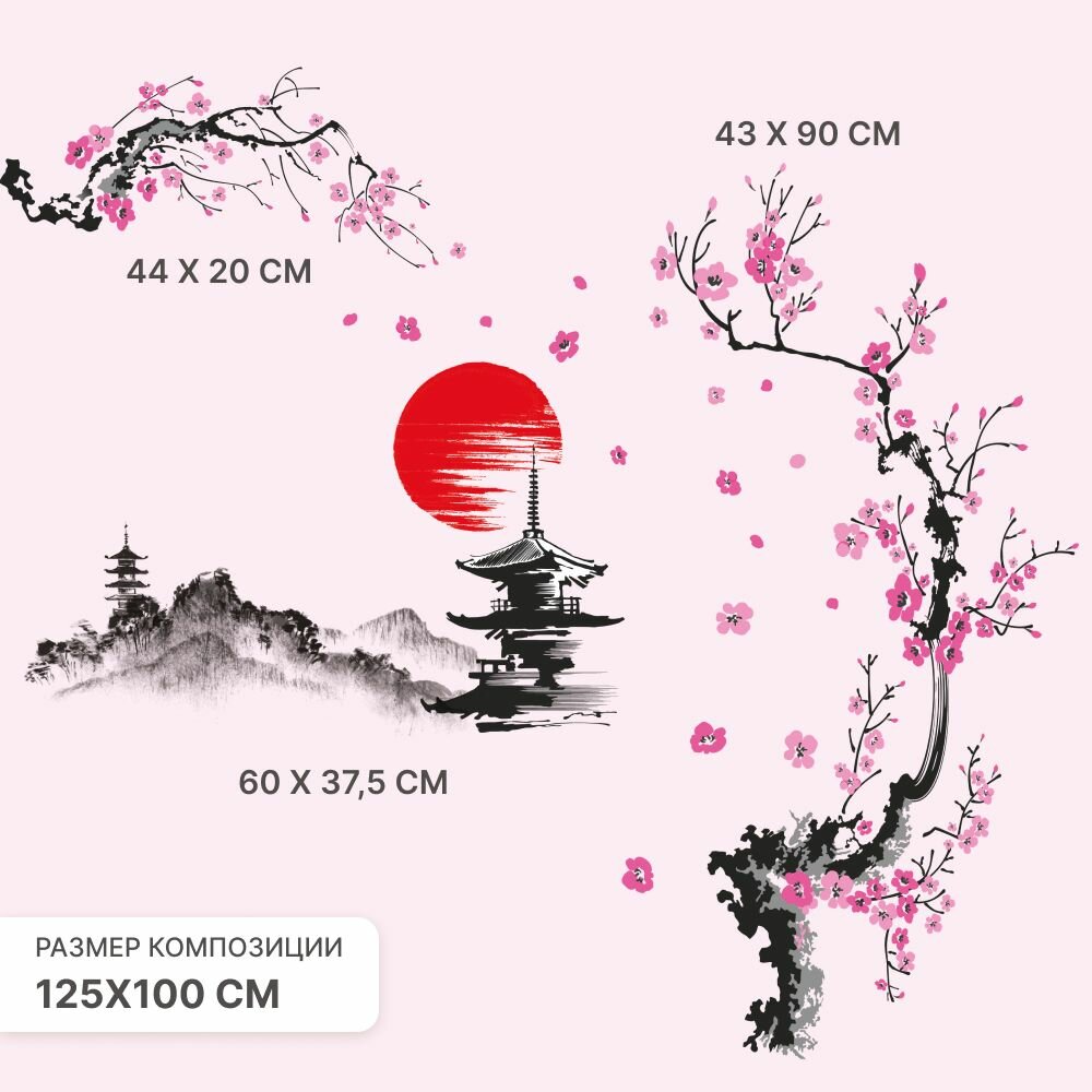 Наклейка для интерьера на стену "Суми-э" Stik, виниловое украшение на окно в кухню, гостиную, детскую. Декор на дверь и мебель. интересное: