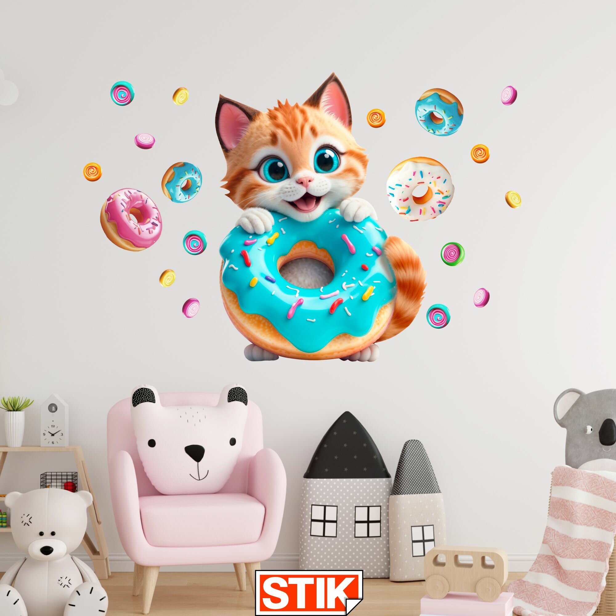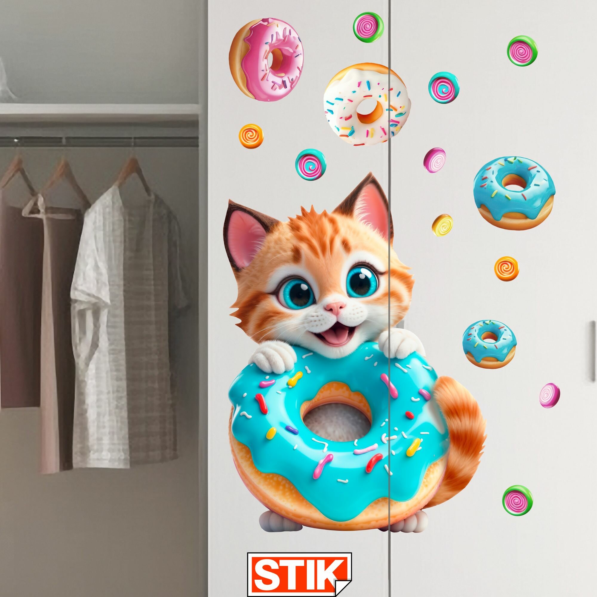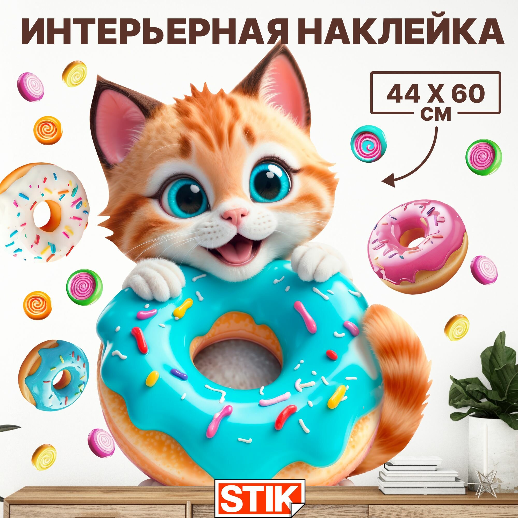 Купить Детские интерьерные наклейки для дома "Кот с пончиком" Stik, самоклеящийся декор для оформления комнаты, кухни .