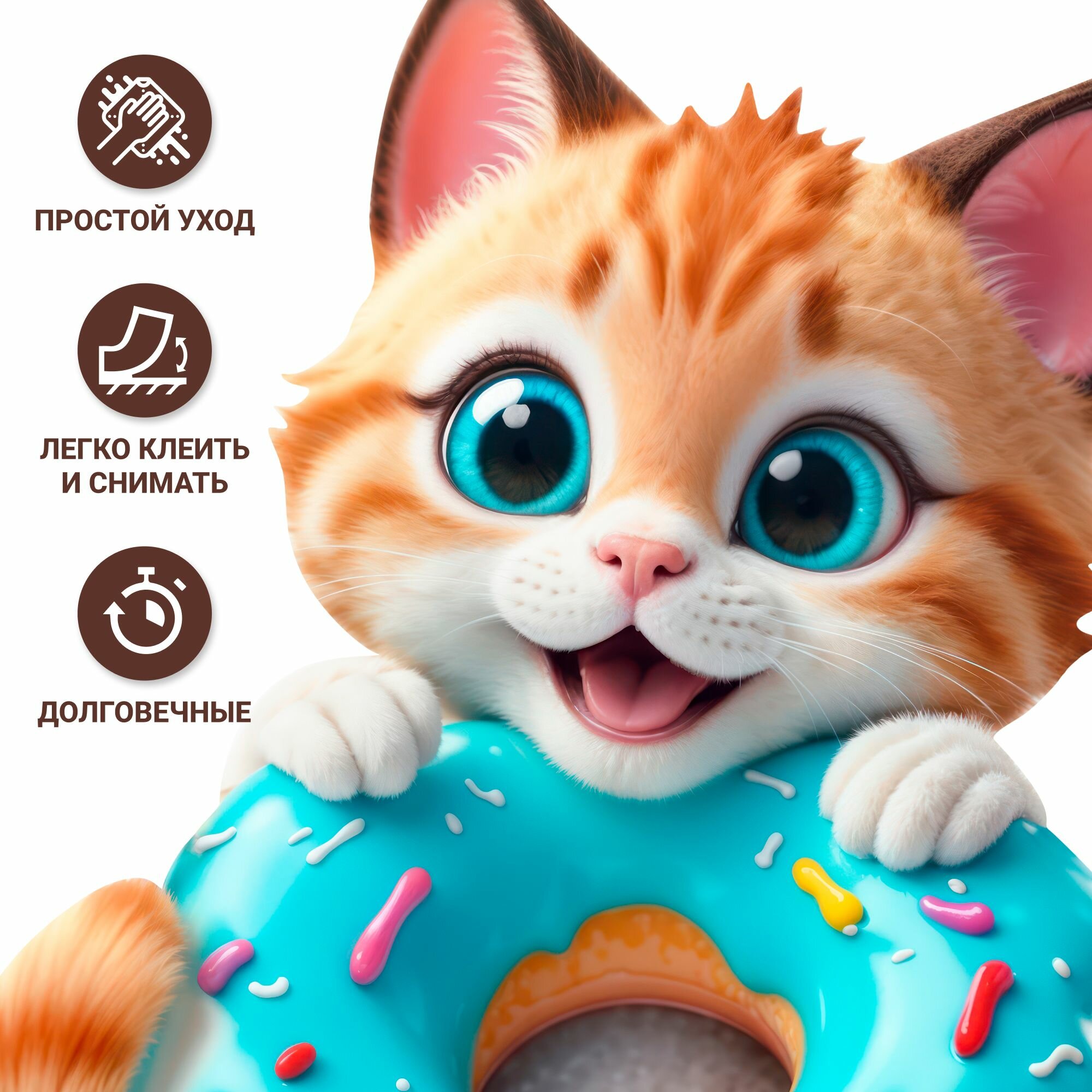 Детские интерьерные наклейки для дома "Кот с пончиком" Stik, самоклеящийся декор для оформления комнаты, кухни . интересное: