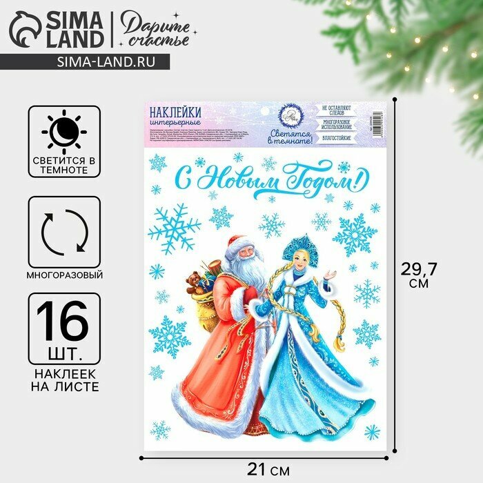Наклейки новогодние, интерьерные со светящимся слоем "С Новым годом!", 21 x 29.7 см интересное: