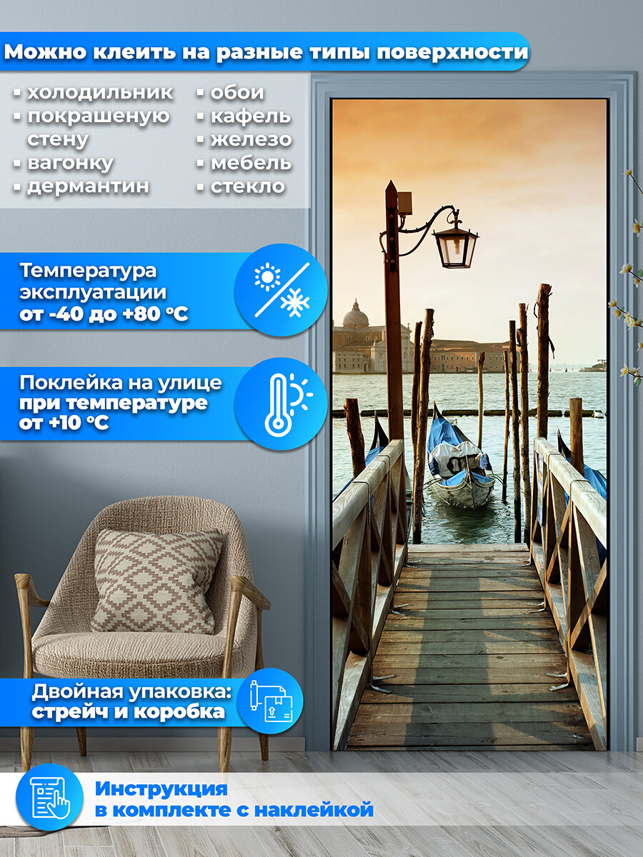 Наклейка интерьерная на дверь "Венецианский причал", 80х200 см самоклеющаяся интересное: