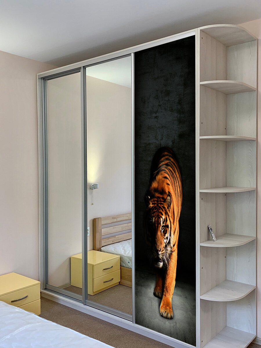 Наклейка интерьерная на дверь "Дикий, притаившийся во тьме тигр", самоклеющаяся 80х200 см. интересное: