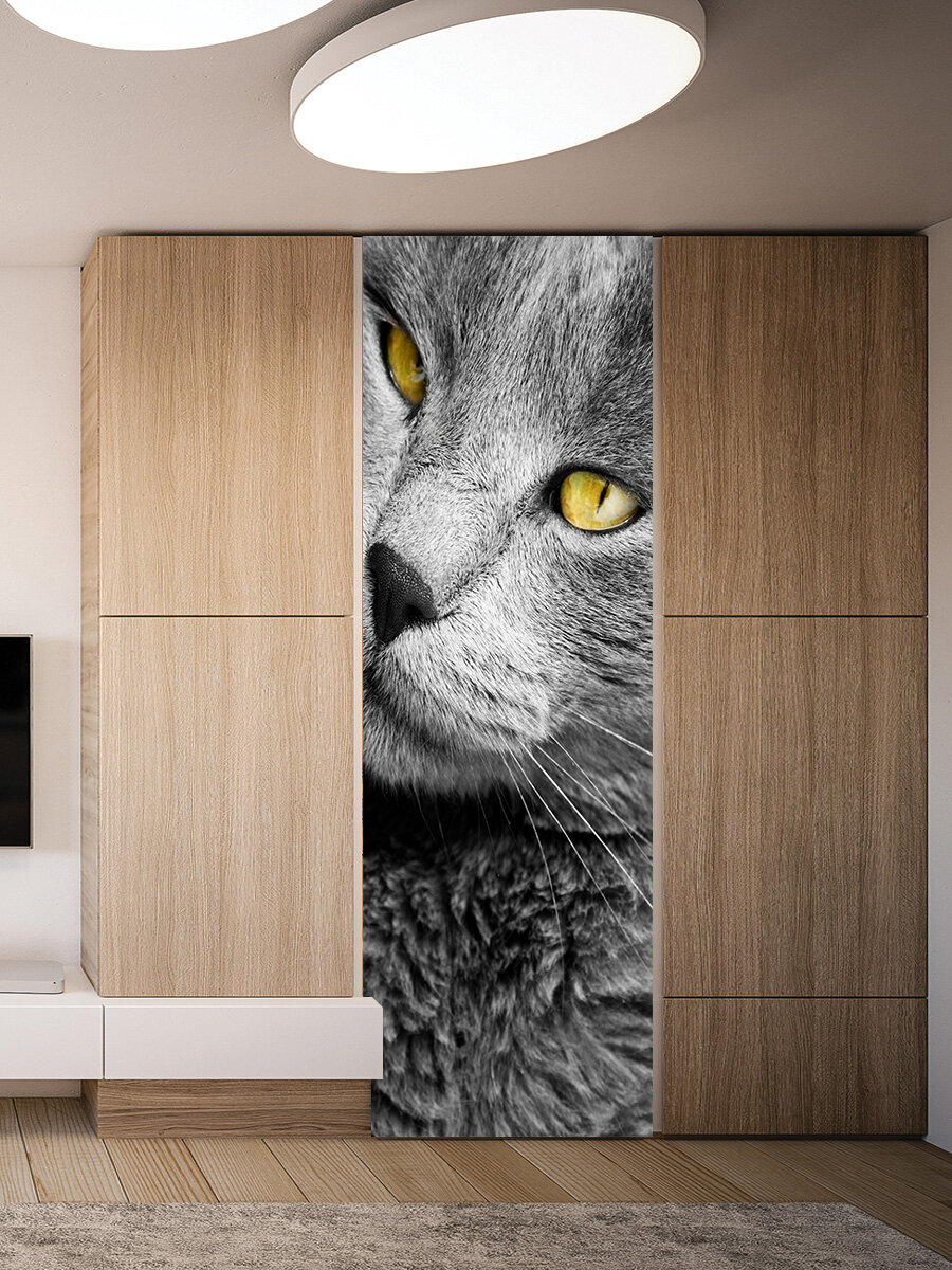 Наклейка интерьерная на дверь "Макро портрет красивого серого кота", самоклеющаяся 80х200 см. интересное: