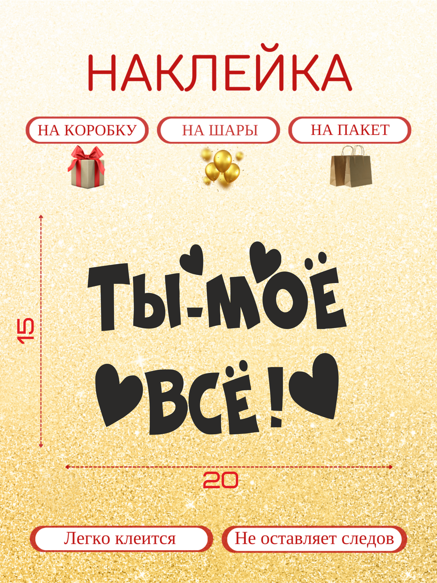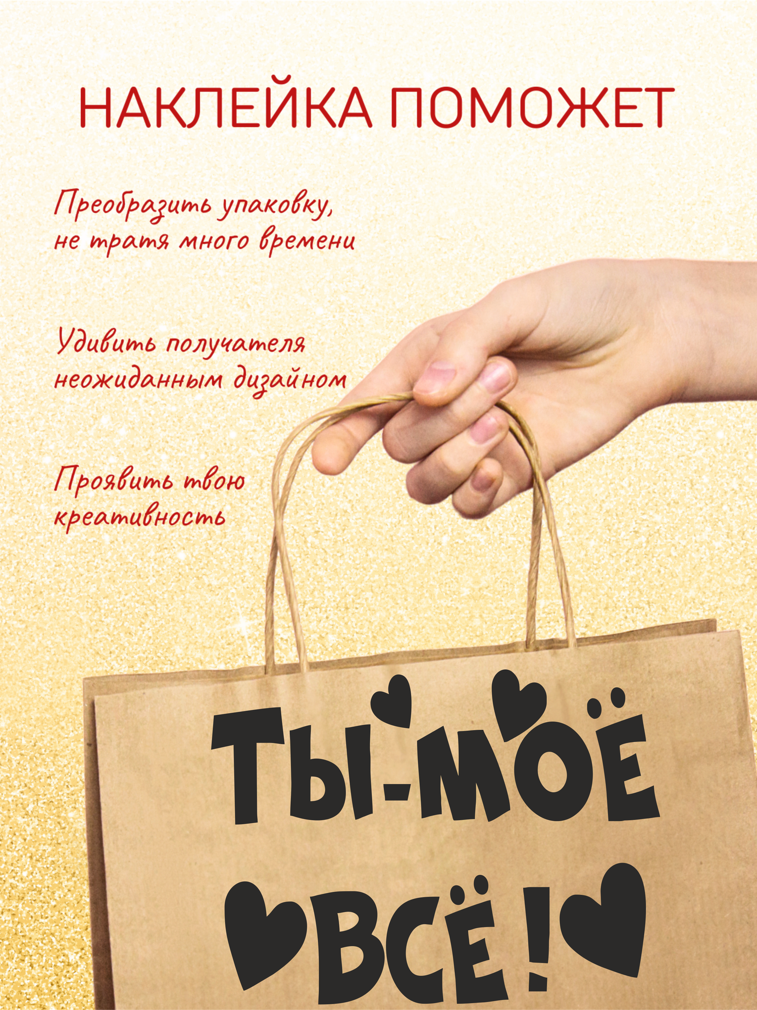 СохранитьНаклейка для подарочной упаковки , шара, пакета "Ты моё все" 20х15 черный мат интересное: