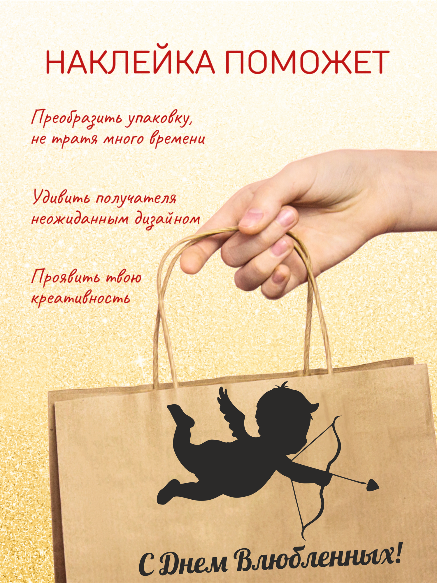 СохранитьНаклейка для подарочной упаковки , шара, пакета "с Днем Влюбленных" 20х15 черный мат интересное: