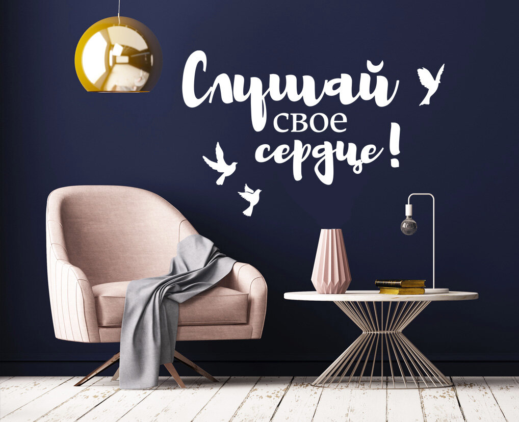 Купить Наклейка интерьерная большого размера белая надпись на стену "Слушай свое сердце", стикер на авто, стекло, мебель, пластик, металл