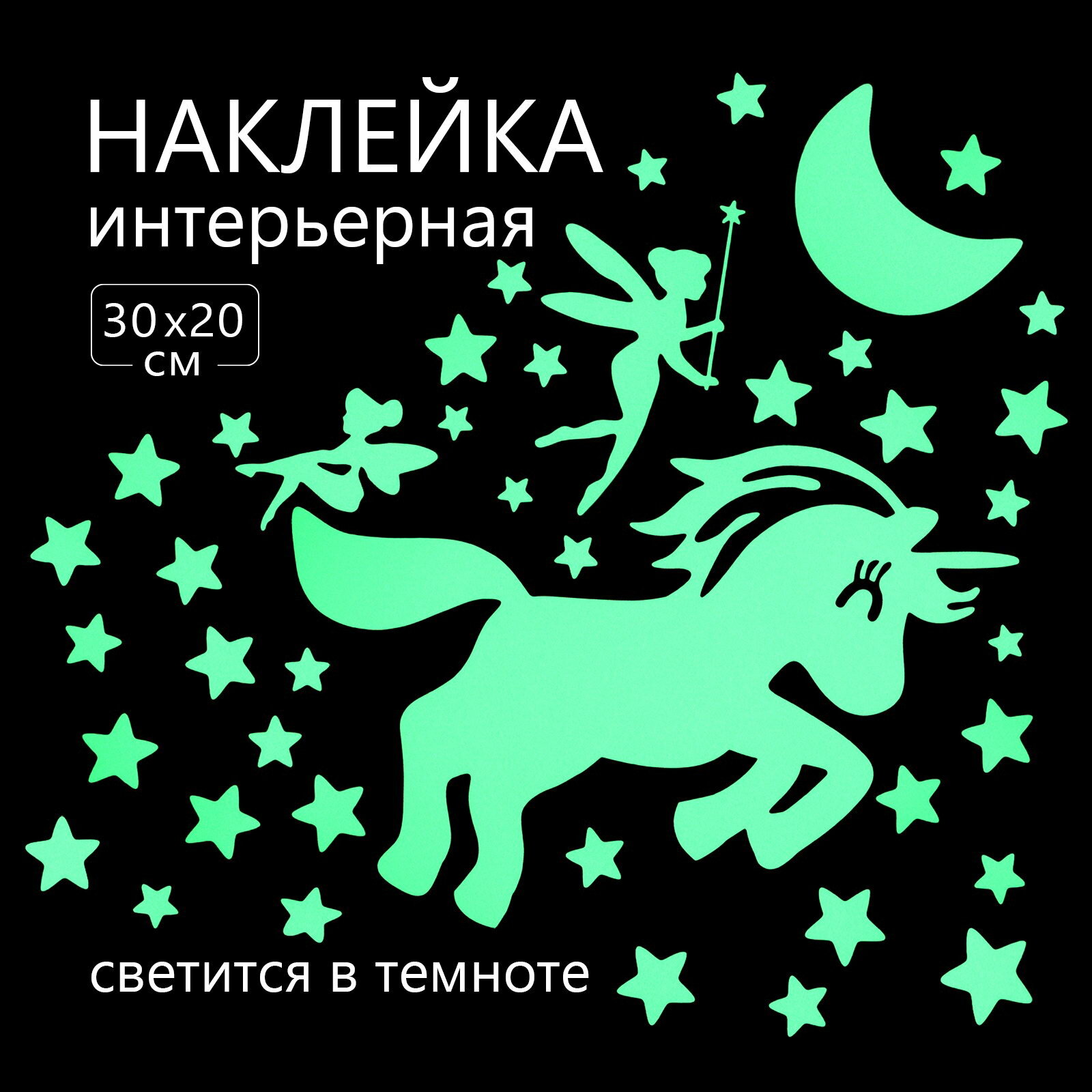 Наклейка 3Д интерьерная светящаяся Единорог 30*20см, тематика: 3d-эффект интересное:
