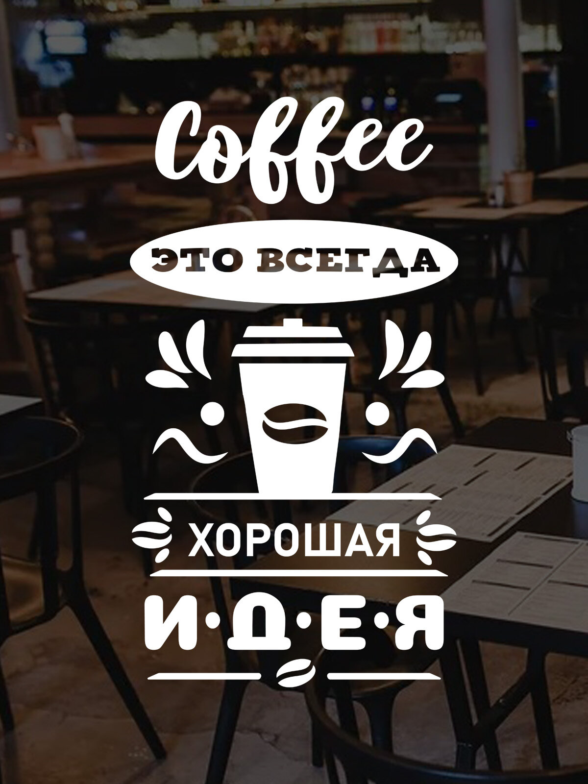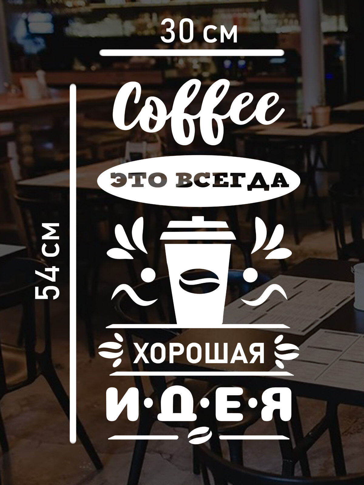Купить Наклейка на стену ' Кофе хорошая идея ', 54x30см. (стаканчик с любимым горячим напитком)