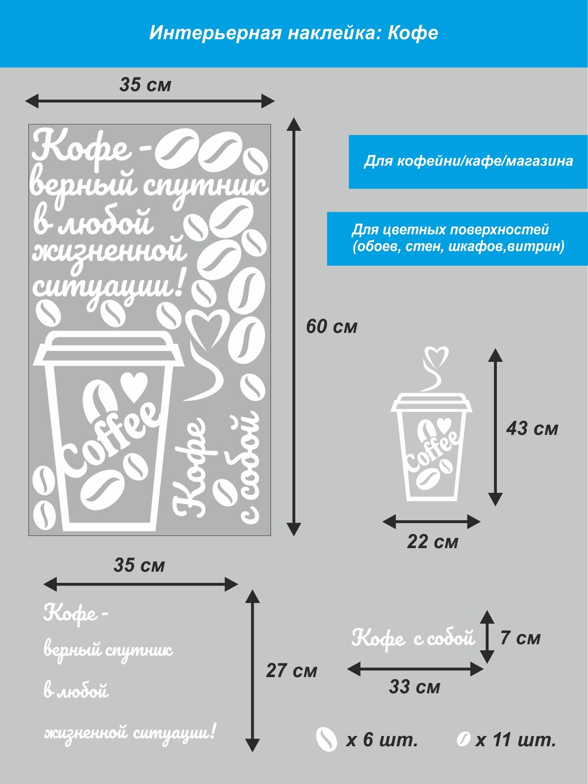 Наклейка на стену ' Кофе с собой ', 60x35см. (весёлый стаканчик на вынос и зёрна)