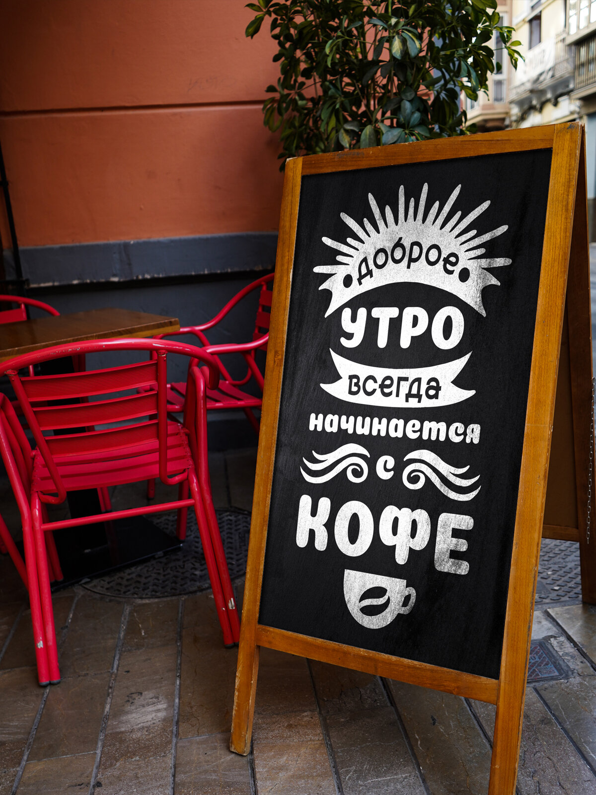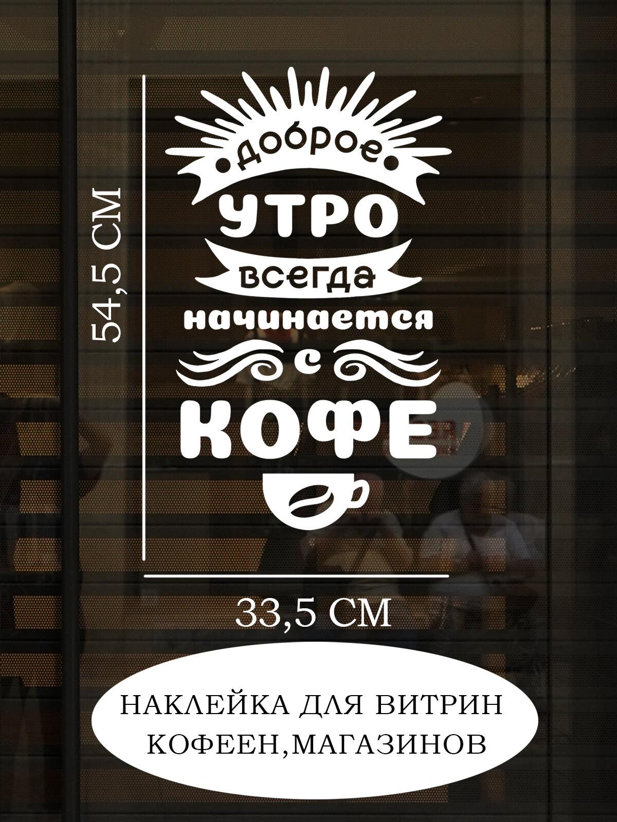 Купить Наклейка на стену ' Доброе утро с кофе ', 55x34см. (для витрин, кофеен, магазинов)