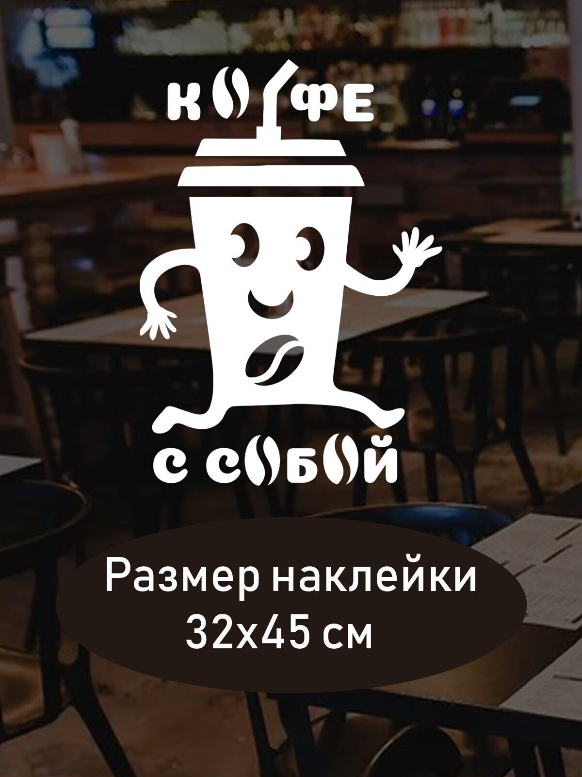 Наклейка на стену ' Кофе с собой ', 60x35см. (весёлый стаканчик на вынос и зёрна)