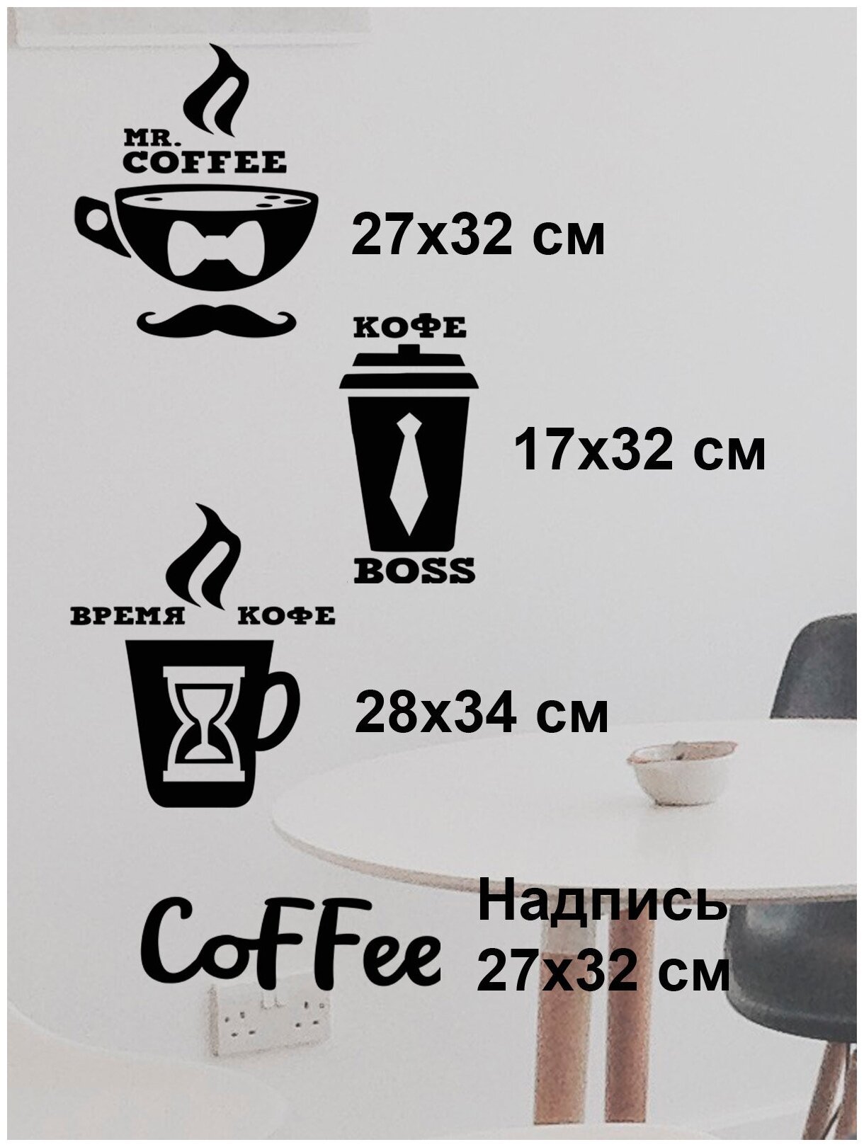 СохранитьНаклейка на стену ' Кофе Boss ', 120x35см. (время любимого напитка из жареных и перемолотых зёрен, в чёрном цвете) интересное: