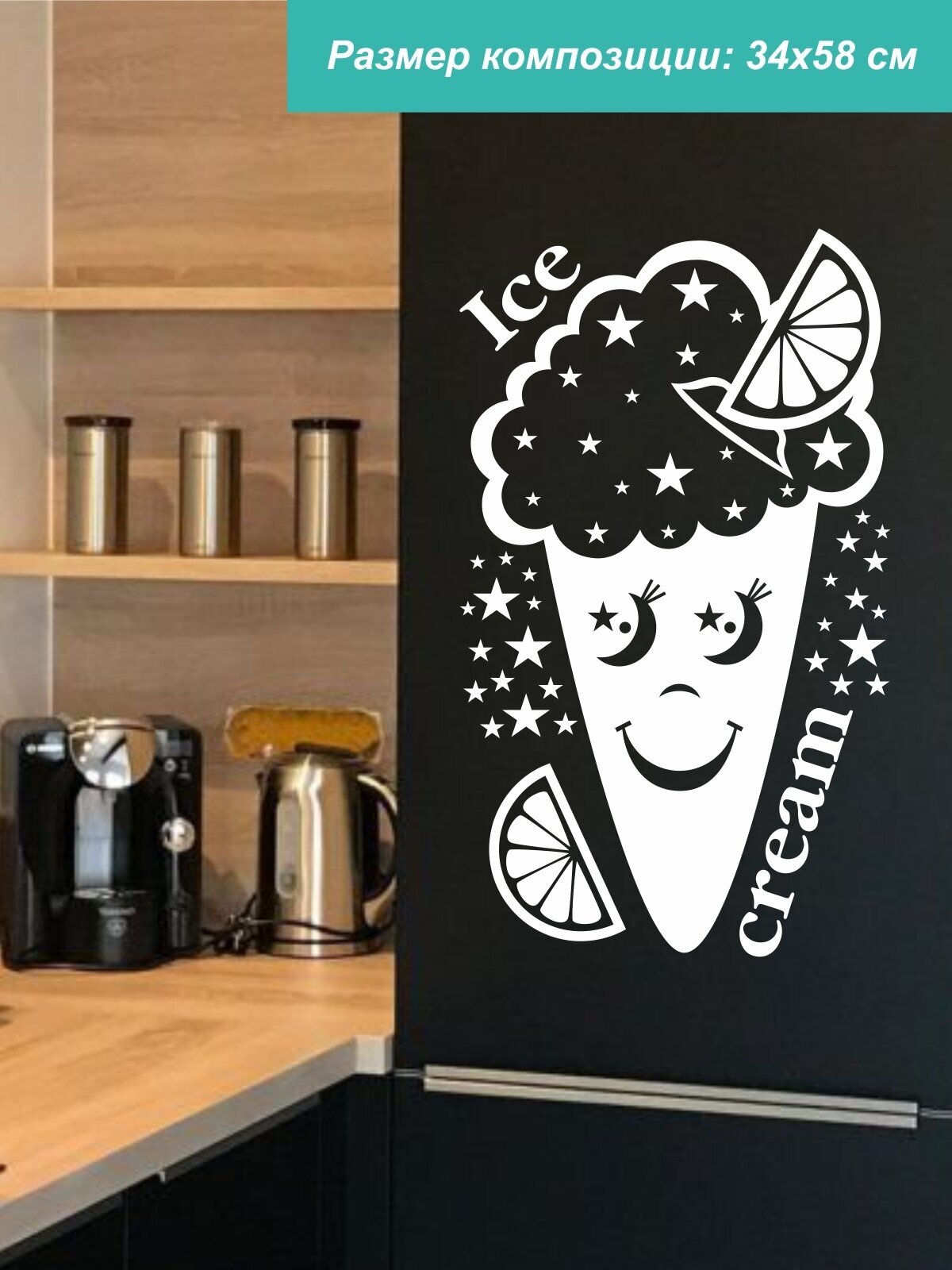 СохранитьНаклейка на стену ' Мороженое ', 58x34см. (Лимонное со звездами) интересное: