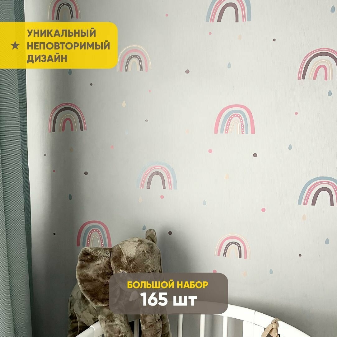 Купить Интерьерные наклейки на стену в детскую комнату Радуги розовые с голубым
