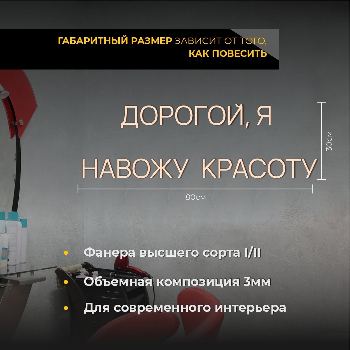 Декорация настенная надпись для салона "Дорогой, я в парикмахерской"