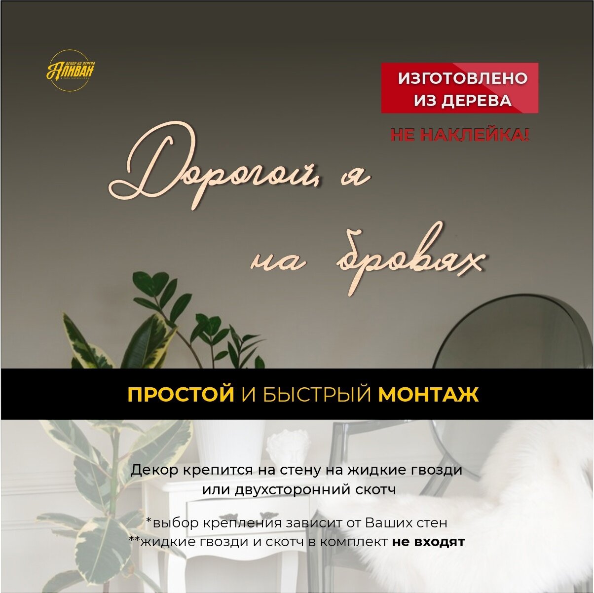 Купить Декорация настенная надпись для салона "Дорогой, я на бровях"