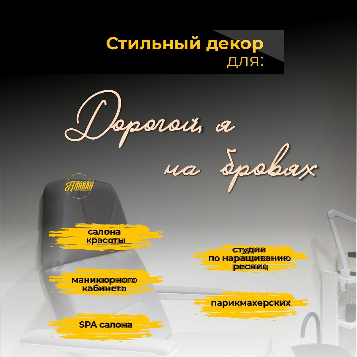 СохранитьДекорация настенная надпись для салона "Дорогой, я на бровях" интересное: