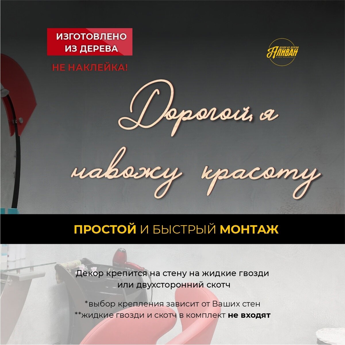 Ниже Вы можете прочитать отзывы на Декорация настенная надпись для салона "Дорогой, я навожу красоту"., ознакомится с подробными характеристиками, посмотреть интересные обзоры и фотографии на Декорация настенная надпись для салона "Дорогой, я навожу красоту"..