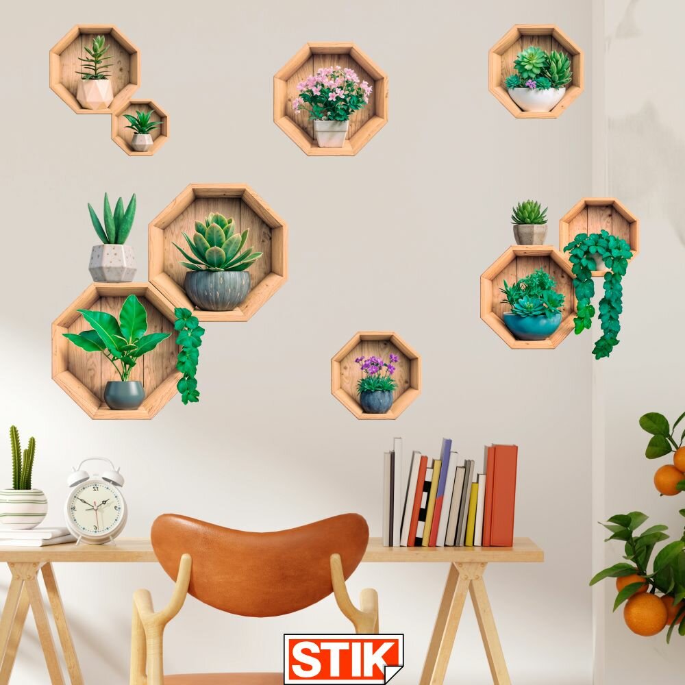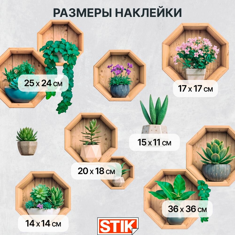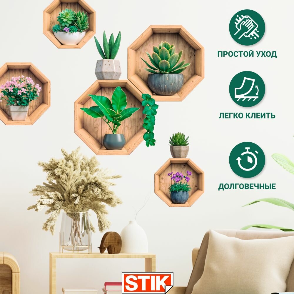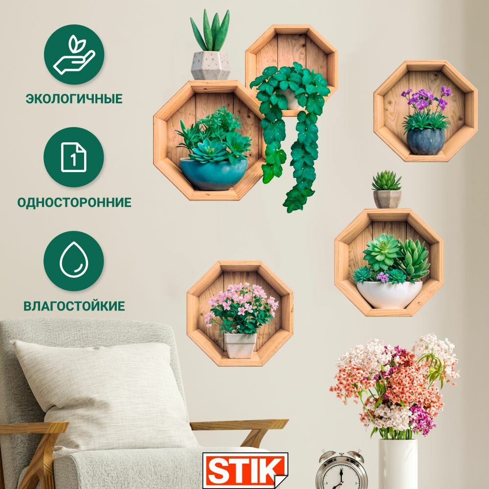 Купить Интерьерные наклейки Stik "Цветы в горшках", виниловые, влагостойкие, термостойкие, для декора.
