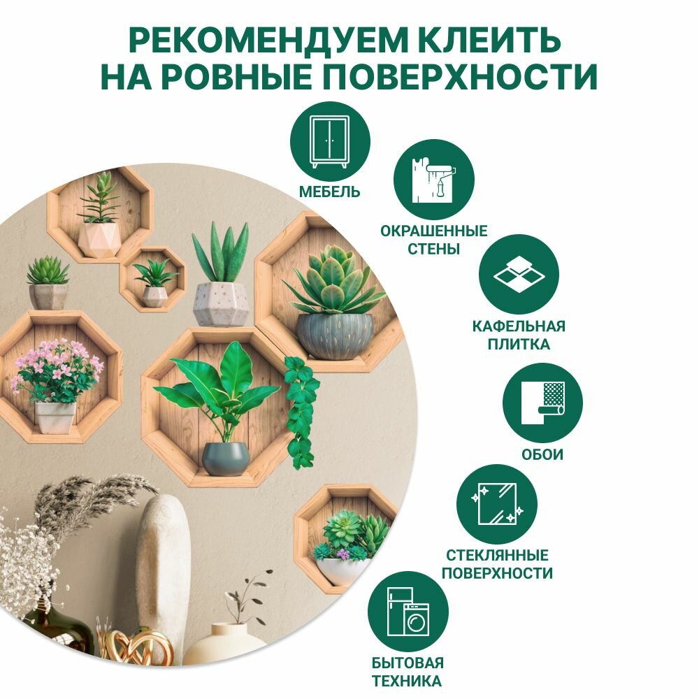 Интерьерные наклейки Stik "Цветы в горшках", виниловые, влагостойкие, термостойкие, для декора. интересное:
