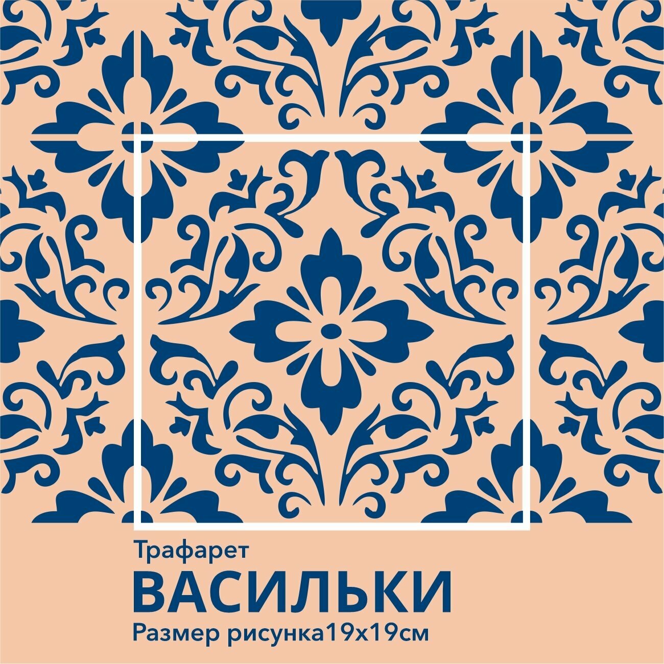 Трафарет "Васильки" 21х21 см - для творчества и декора стен, мебели, плитки и штукатурки. Многоразовый, пластик 0,5 мм интересное: