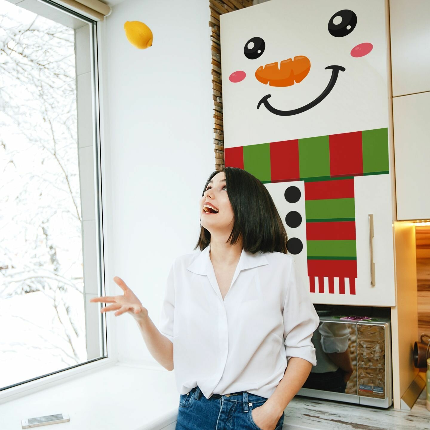 Новогодние наклейки на холодильник со снеговиком интересное: