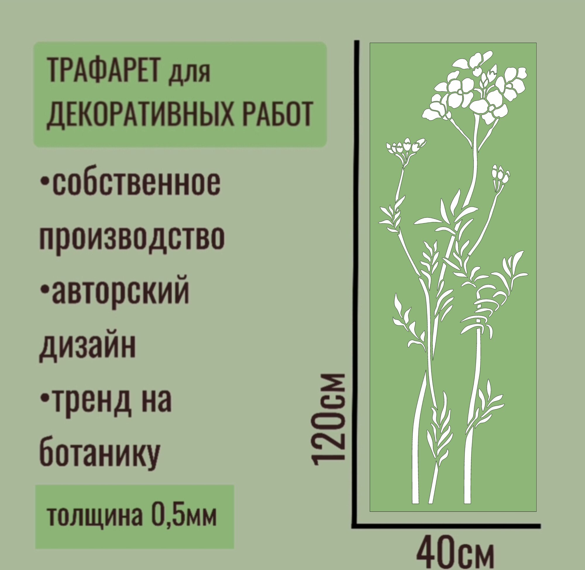 Трафарет для декора и стен - серия "трава" №7 Большой, толщина ПЭТ - 0,5 мм размер 120х40 см для штукатурки и краски интересное: