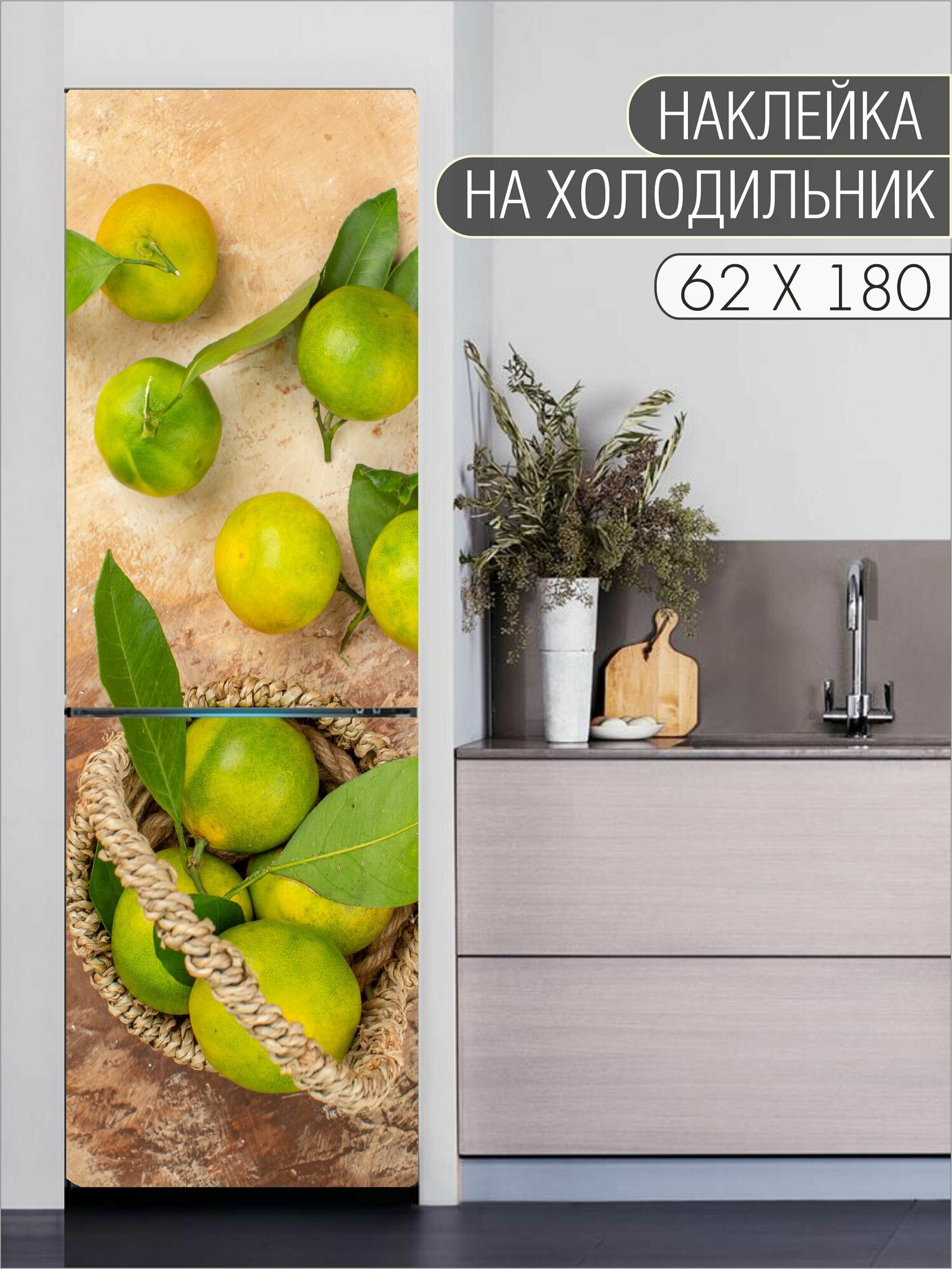 Купить Интерьерная наклейка на холодильник "Лайм в плетеной корзинке" для декора дома, размер 62х180 см