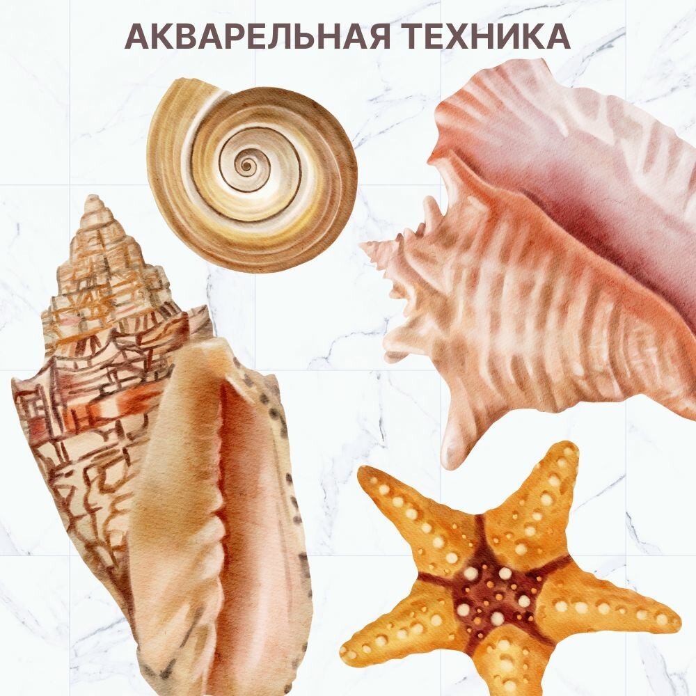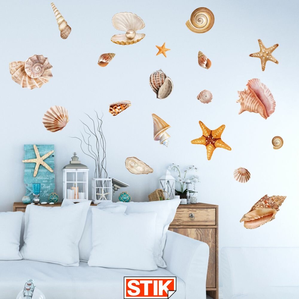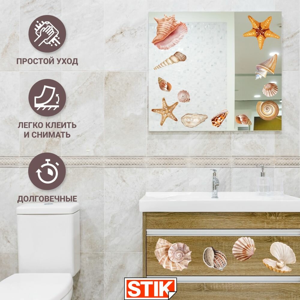 Купить Наклейки интерьерные "Ракушки" Stik, для стен, мебели, кафеля. Самоклеящийся, водонепроницаемый декор для ванной комнаты