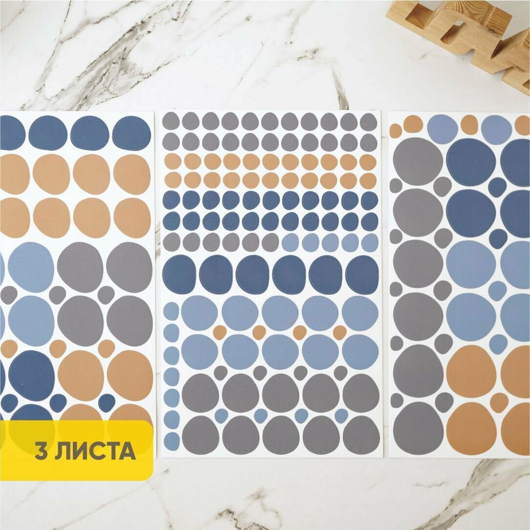 Интерьерные наклейки на стену - Кружочки синие и бежевые / Декор для детской комнаты интересное: