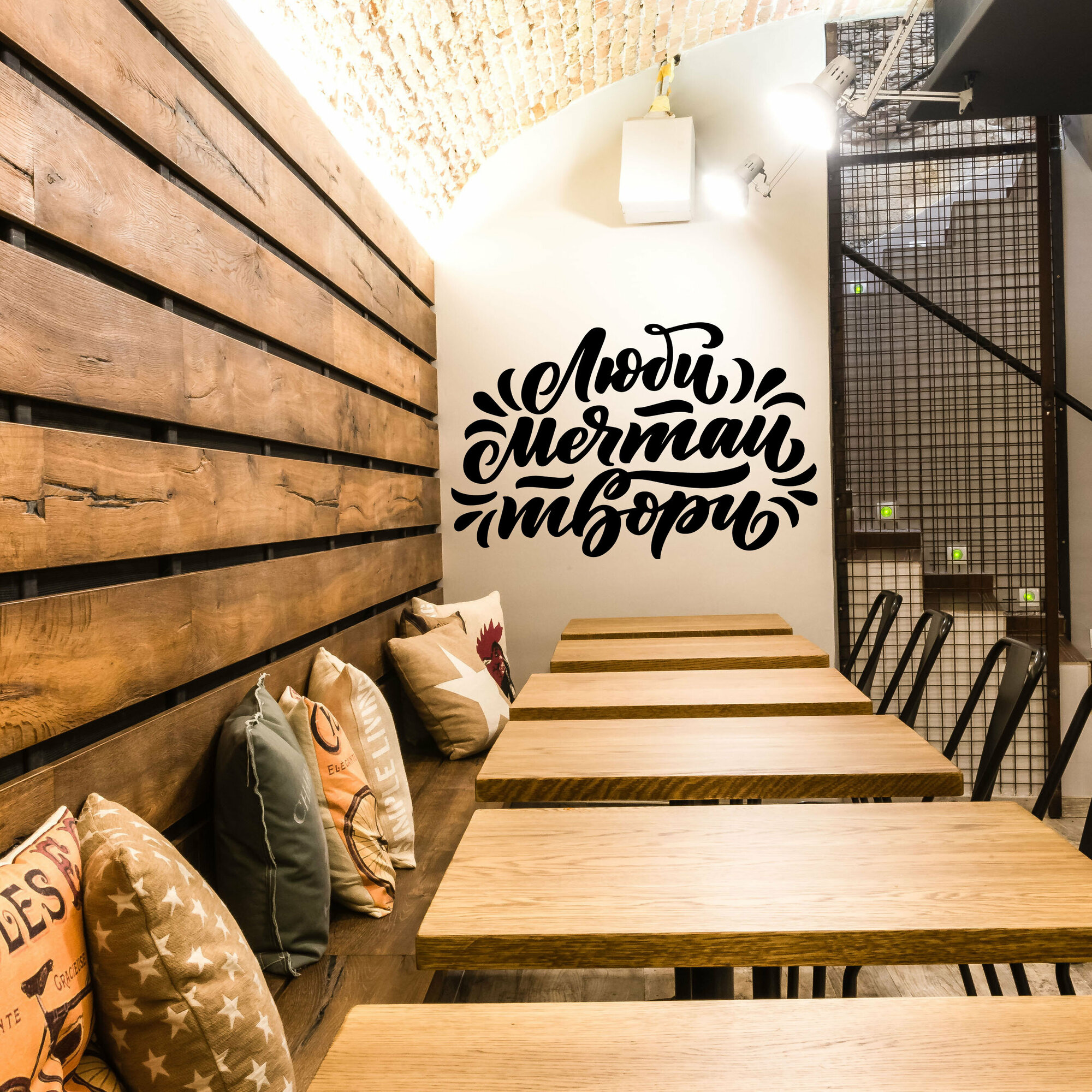 Наклейка интерьерная на стену большая "Люби, мечтай, твори", стикер на мебель, металл, стекло, пластик интересное: